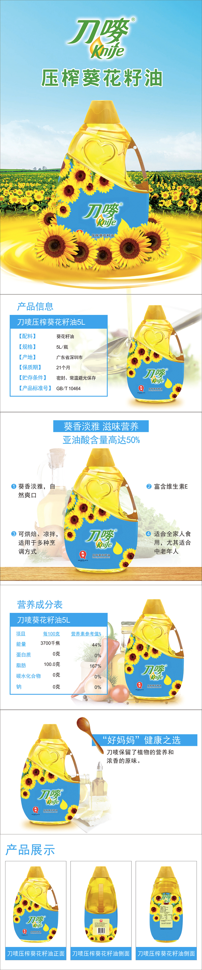商品名称:Knife/刀唛压榨葵花籽油5L