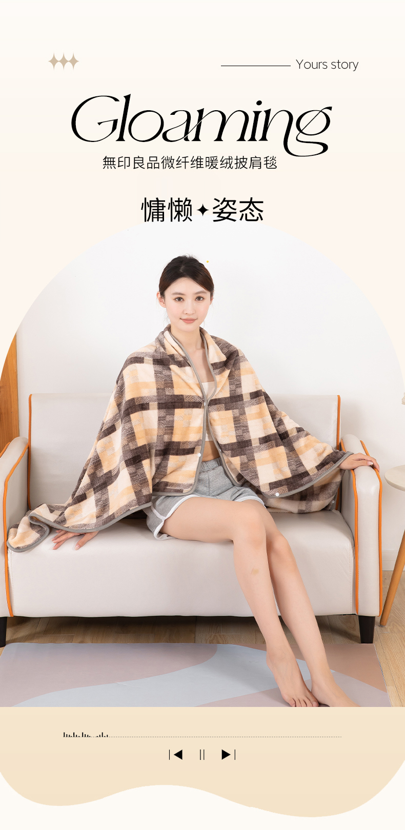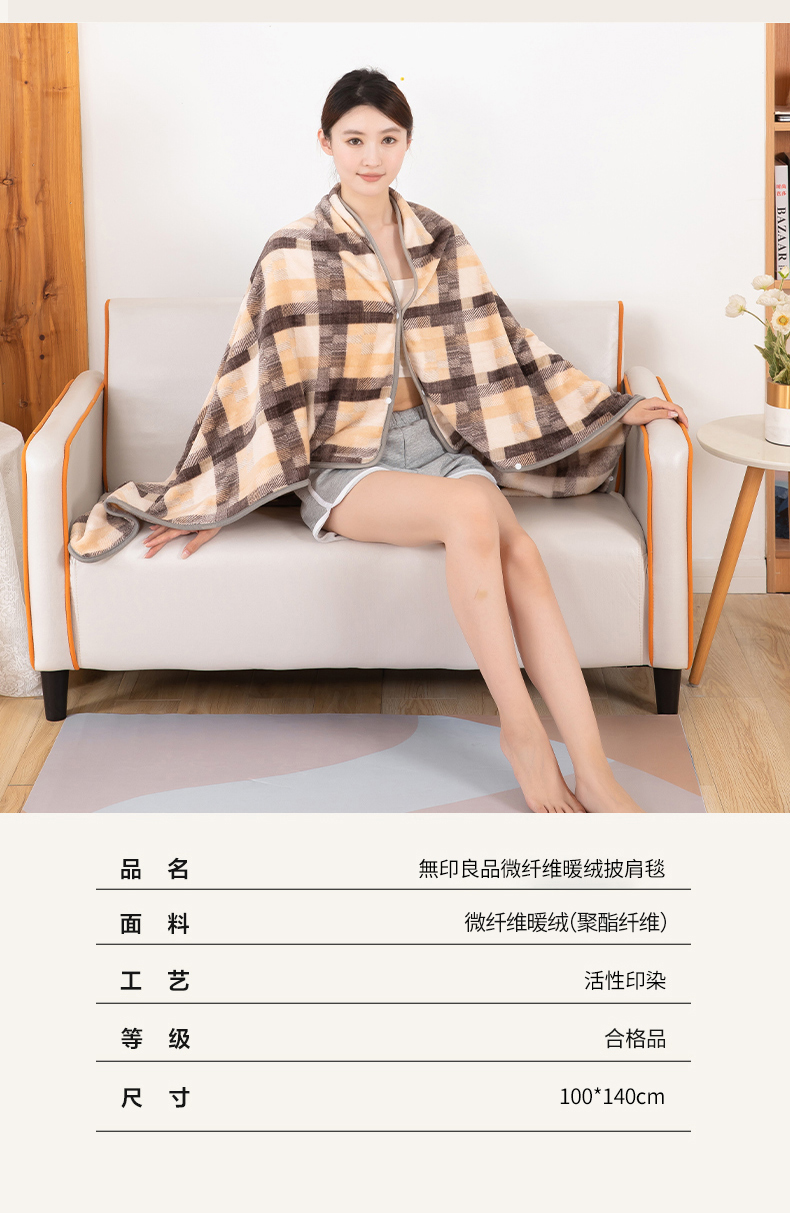 商品名称:无印良品微纤维暖绒披肩毯100*140cm 340g