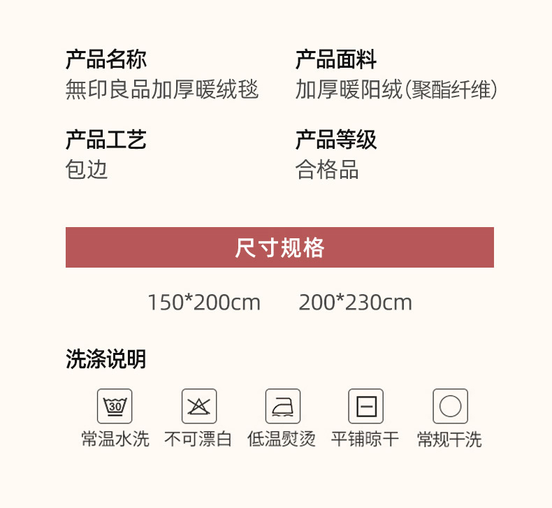 商品名称:无印良品加厚暖绒毯