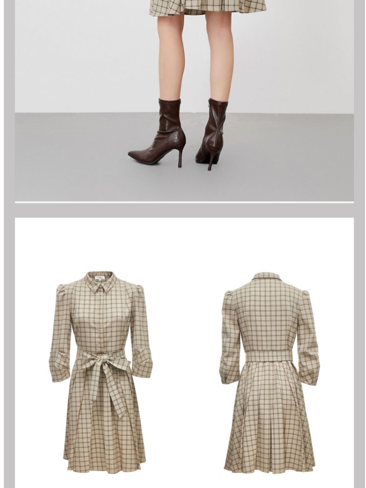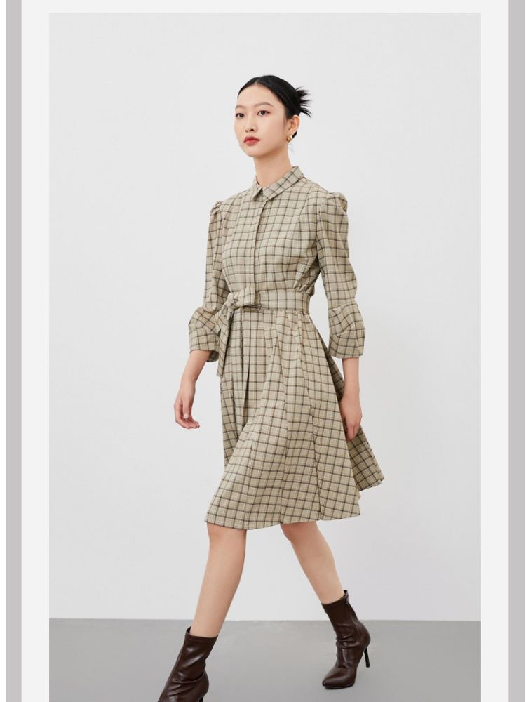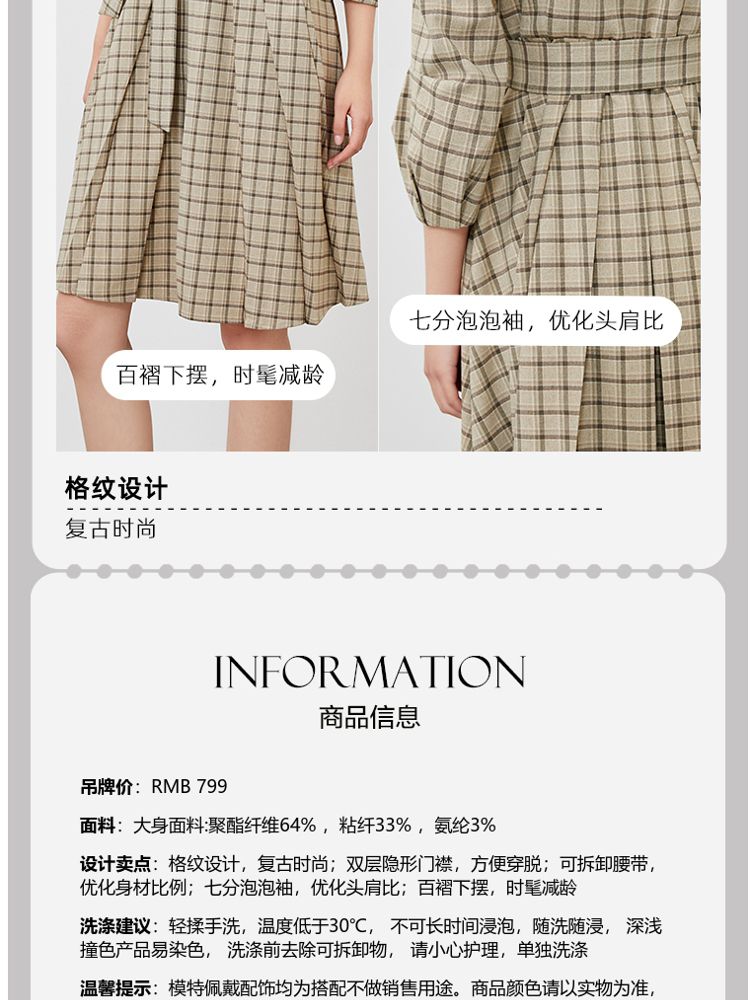商品名称:【春夏美拉德】【专柜同款】格纹中长裙百褶学院连衣裙百搭时尚 012561