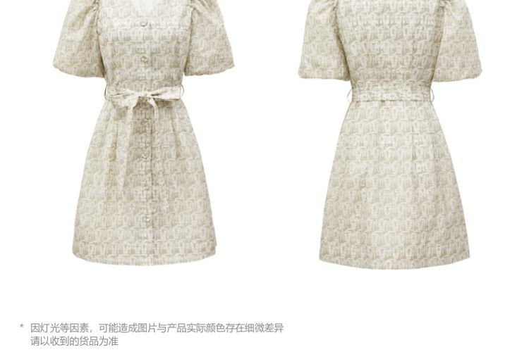 商品名称:收腰A摆v领印花泡泡袖优雅连衣裙气质百搭时尚春夏 696145