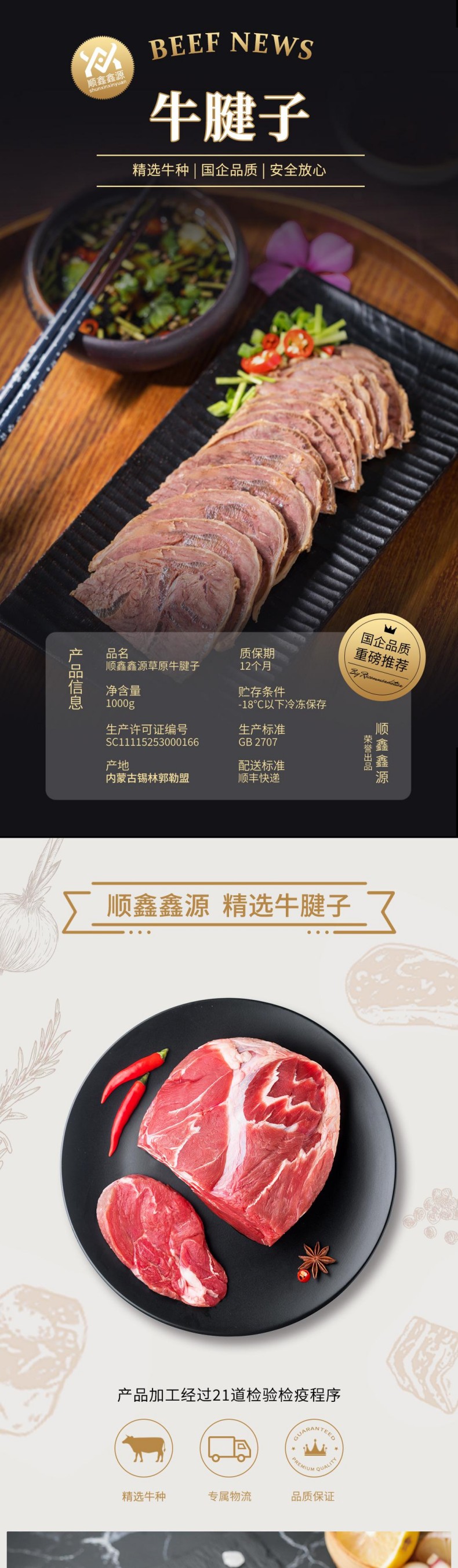 商品名称:【顺丰配送】顺鑫鑫源草原牛腱子1000g