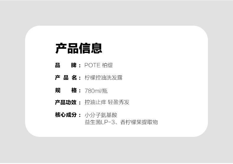 商品名称:POTE/柏缇洗发露/护发素780ml