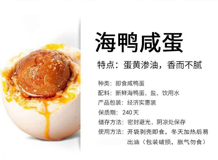 商品名称:亚弟广西北部湾特产即食烤海鸭蛋咸蛋约70g/枚