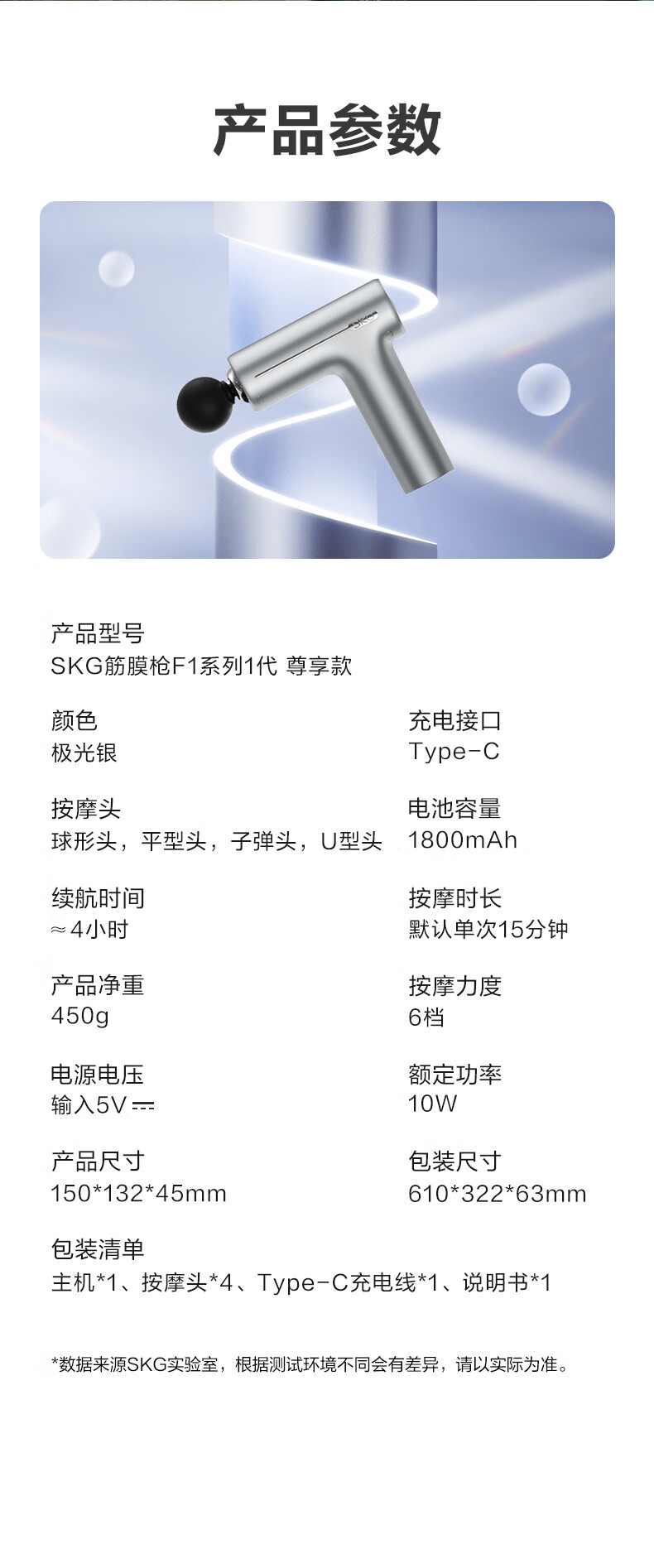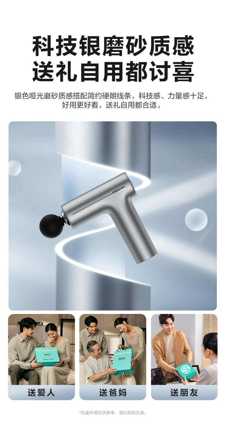 商品名称:【京东/顺丰配送】SKG筋膜枪-极光银F1一代尊享款