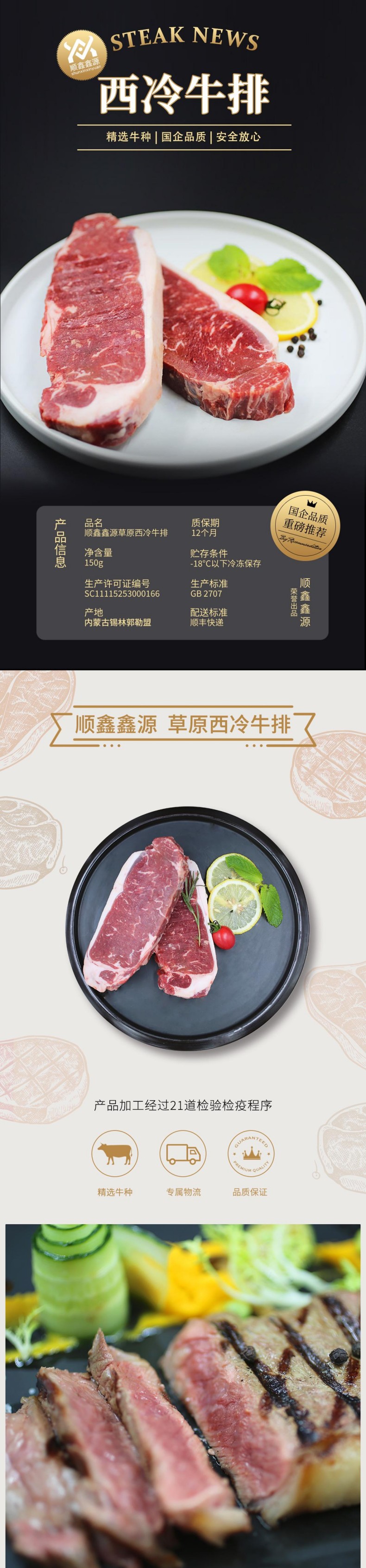 商品名称:【顺丰配送】顺鑫鑫源草原西冷牛排切片150g*2盒