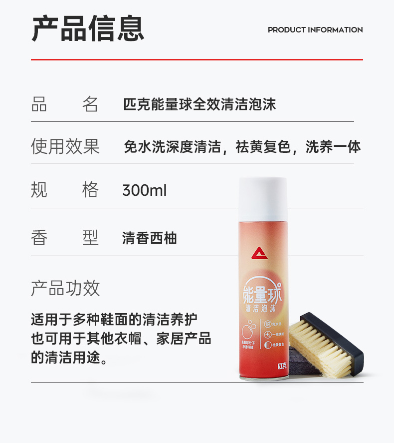 商品名称:匹克能量球全效清洁泡沫300ml