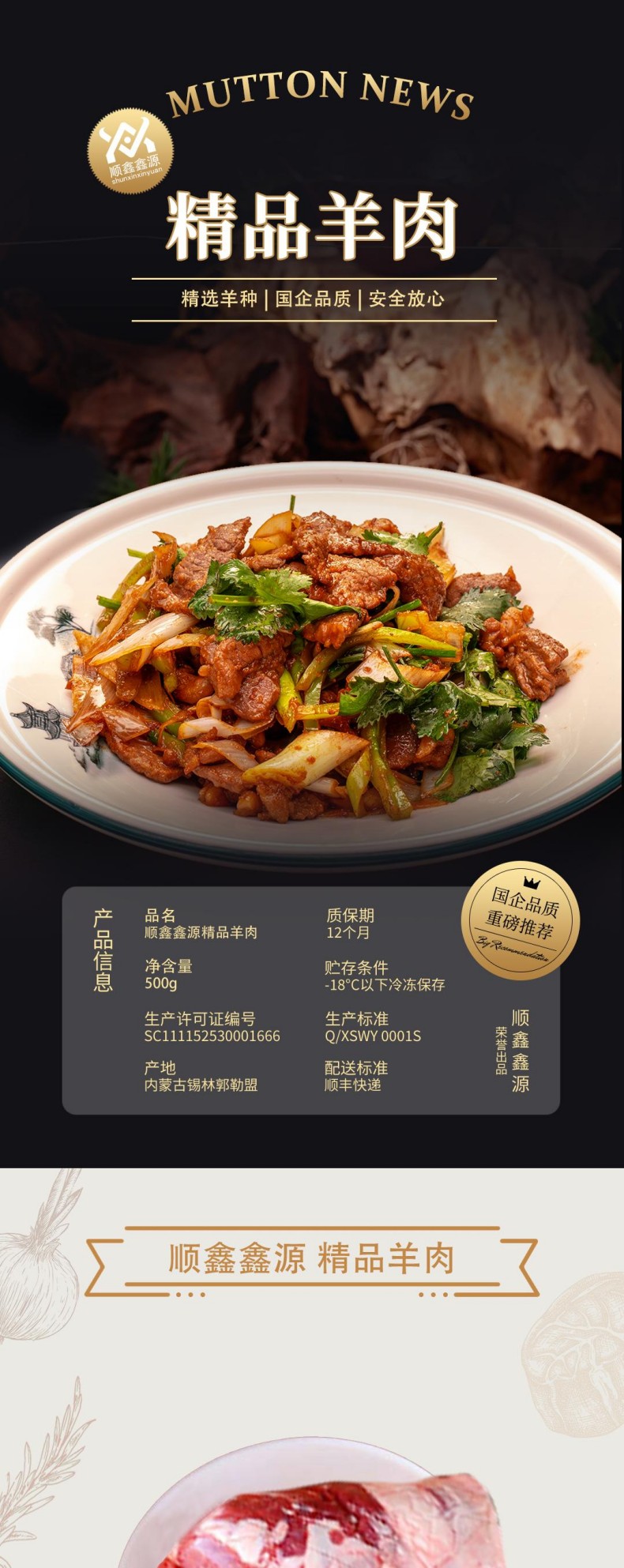 商品名称:【顺丰配送】顺鑫鑫源精品羊肉500g*2袋