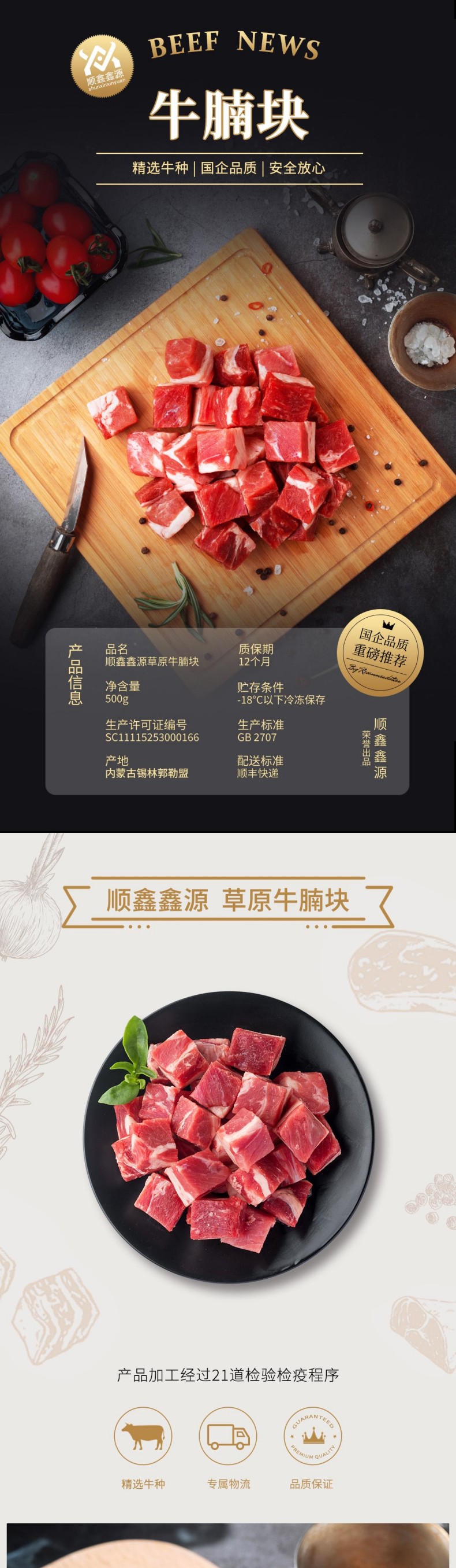 商品名称:【顺丰配送】顺鑫鑫源草原牛腩块500g*3袋