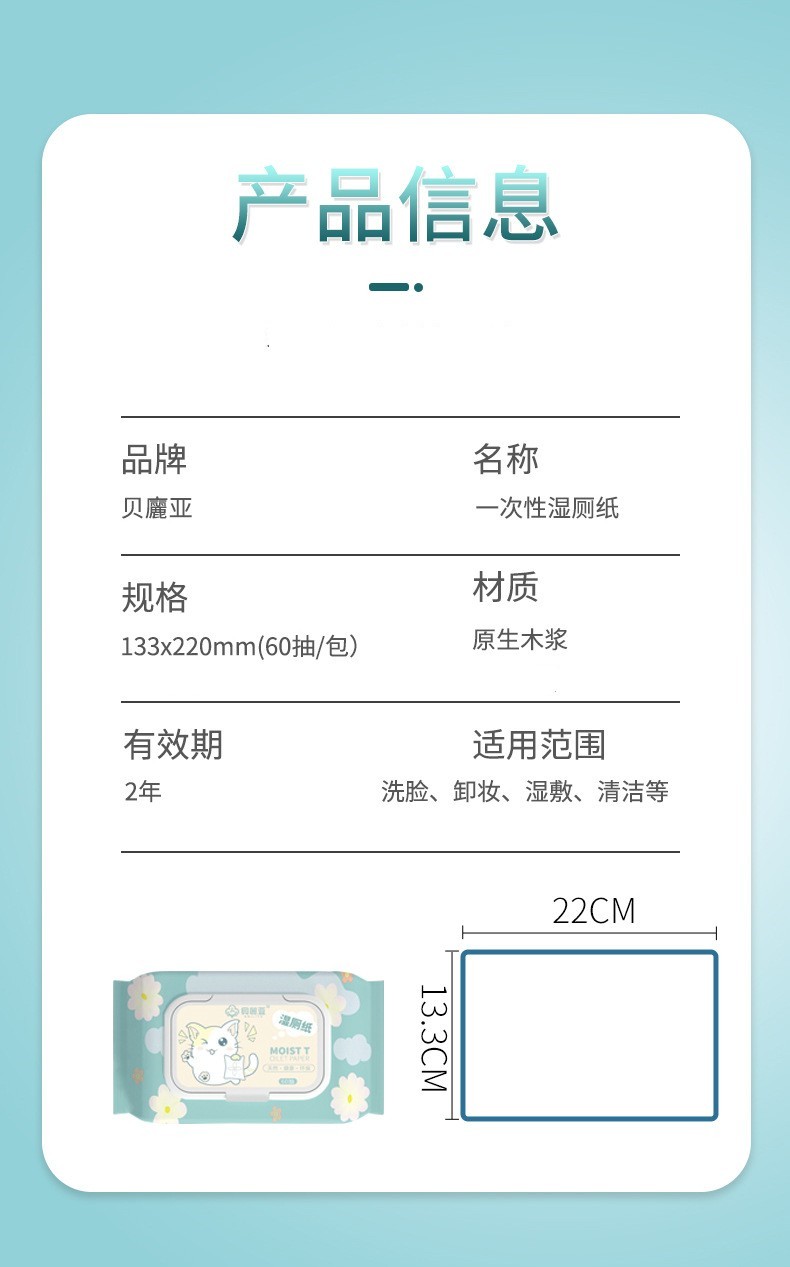 商品名称:贝丽亚一次性湿厕纸60抽*6包
