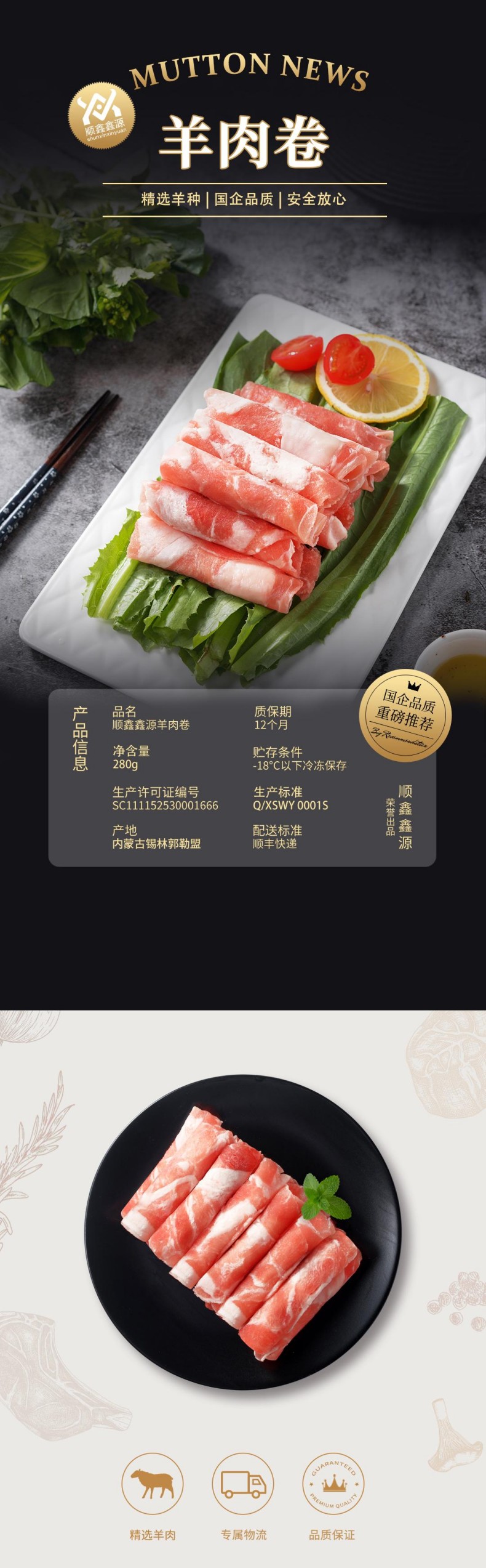 商品名称:【顺丰配送】顺鑫鑫源羊肉卷280g*2盒