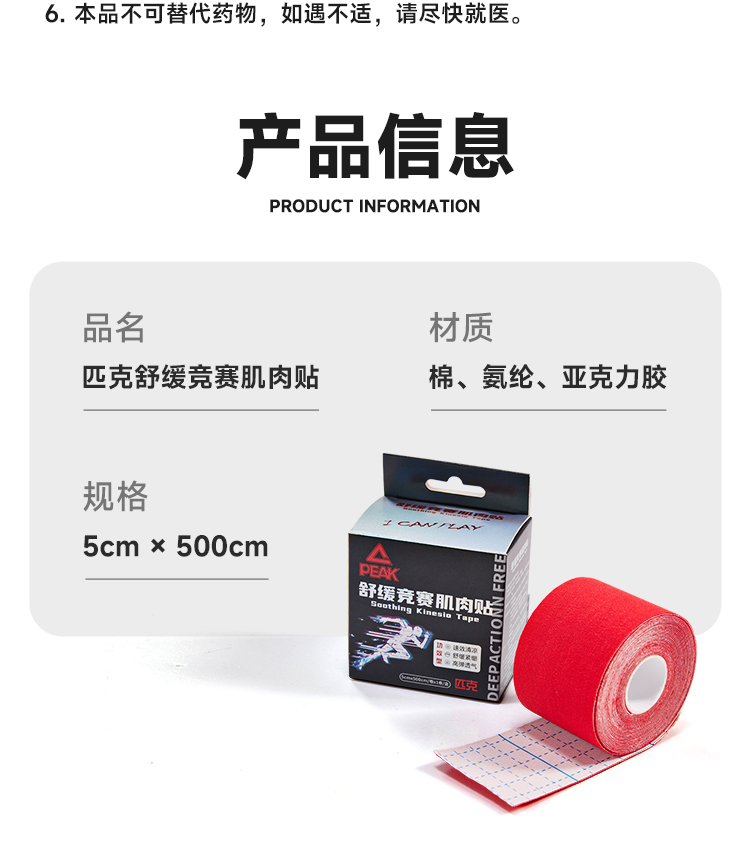 商品名称:匹克舒缓竞赛肌肉贴5cm*5米PQ34322001000