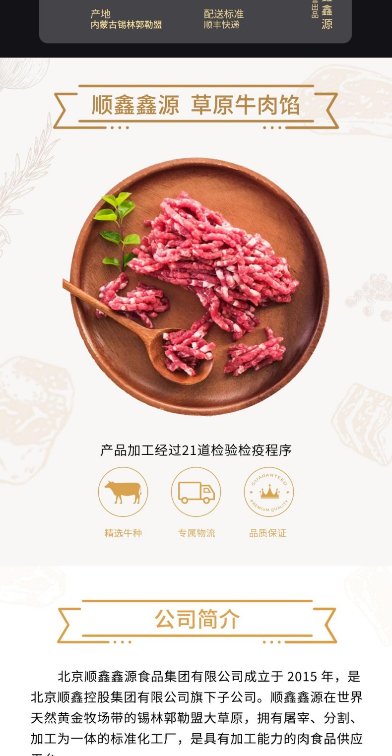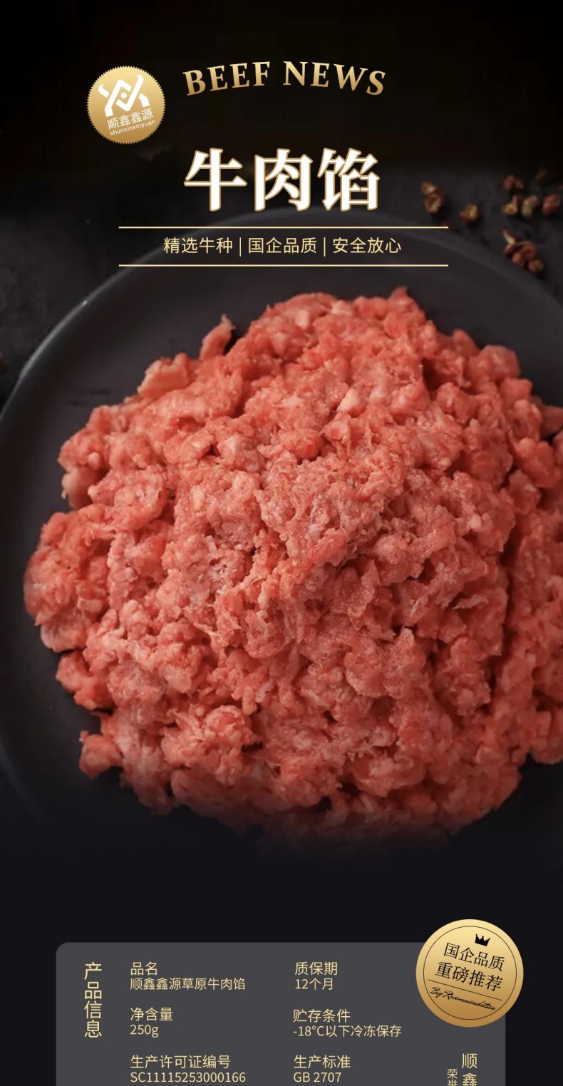 商品名称:【顺丰配送】顺鑫鑫源草原牛肉馅250g*2袋