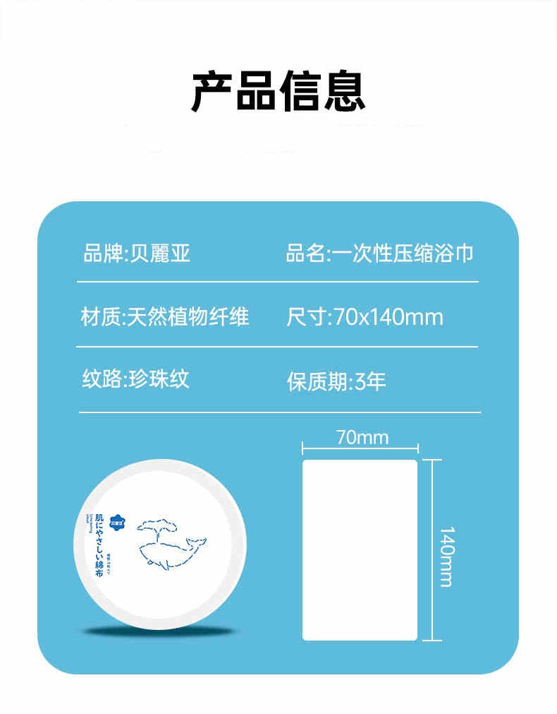 商品名称:贝丽亚蓝鲸系列压缩浴巾EF纹*5粒
