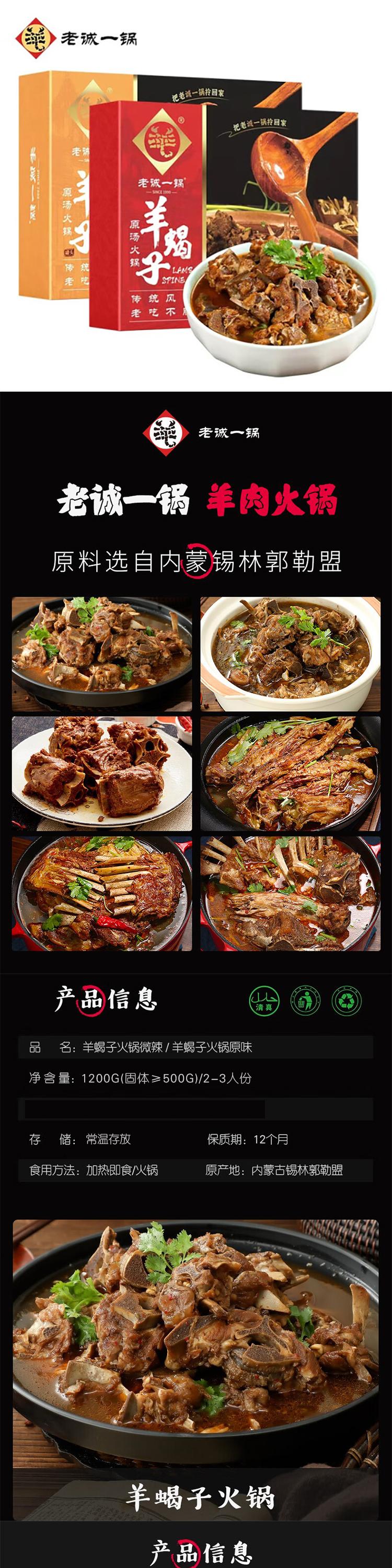 商品名称:老诚一锅羊蝎子1.2kg*2盒