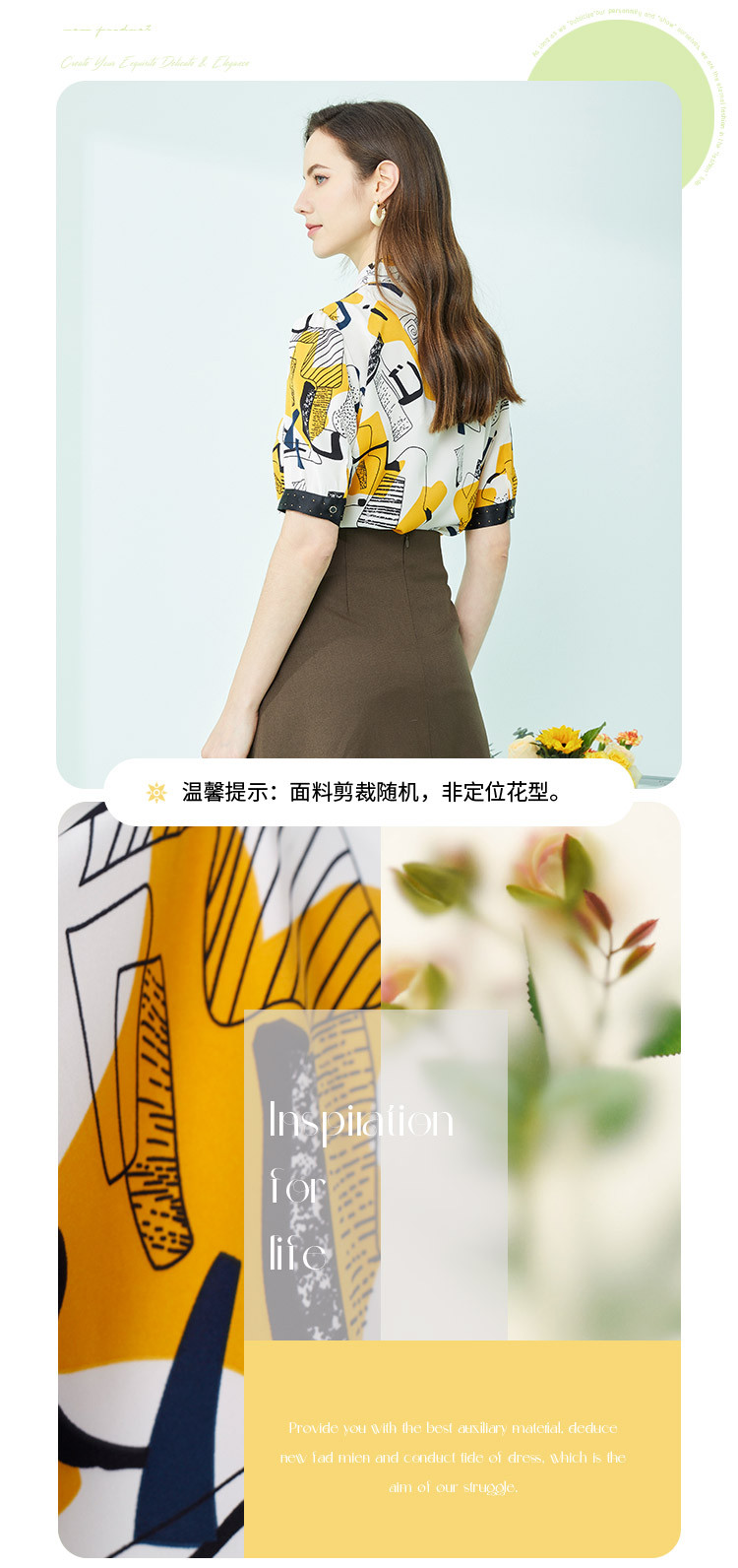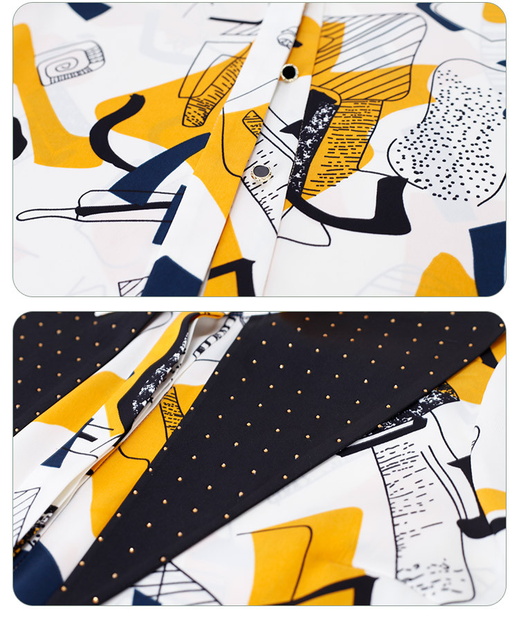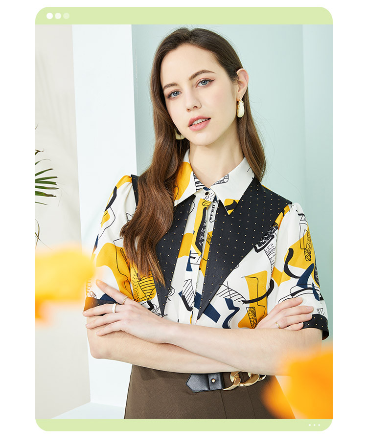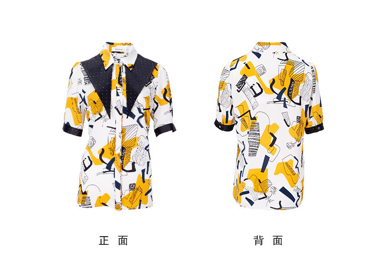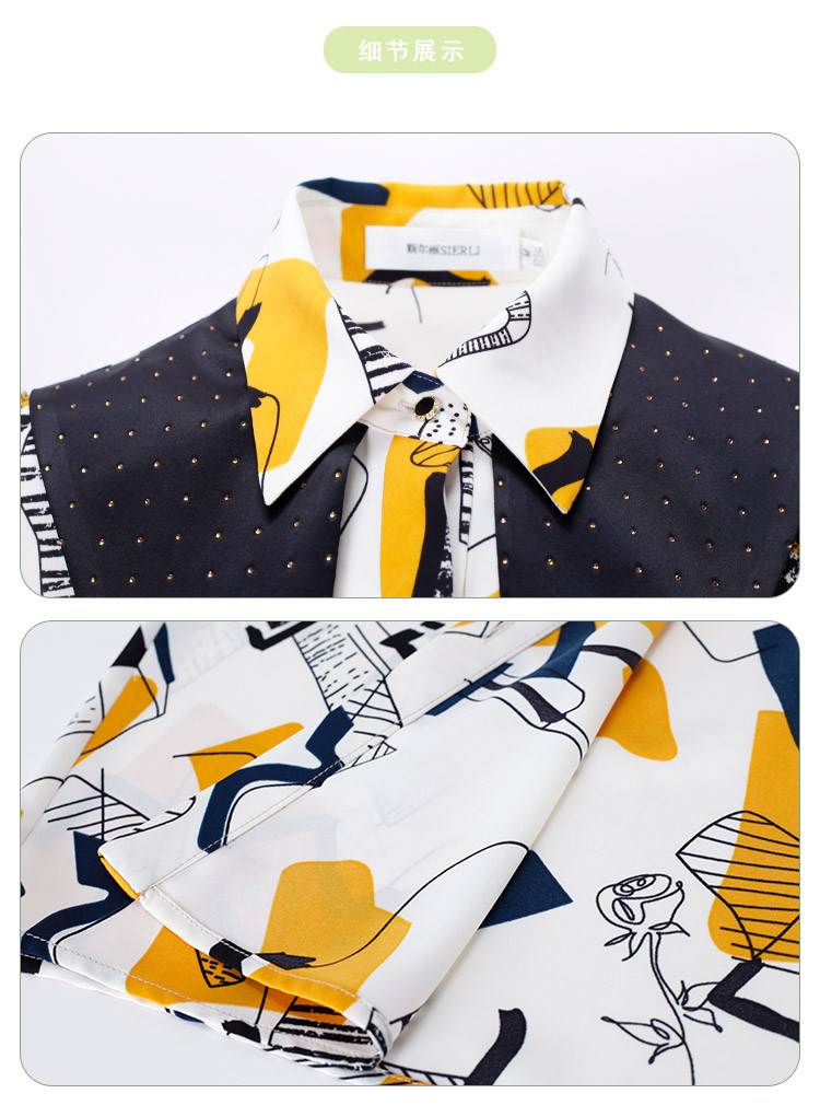 商品名称:秋季撞色翻领波西米亚气质涂鸦碎花烫钻衬衫 097823