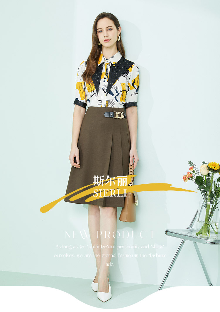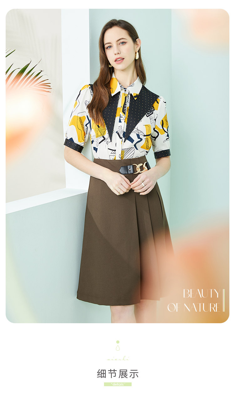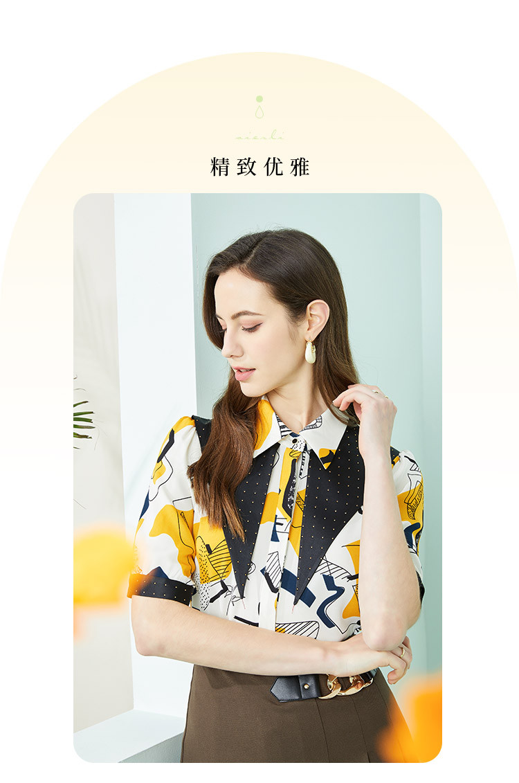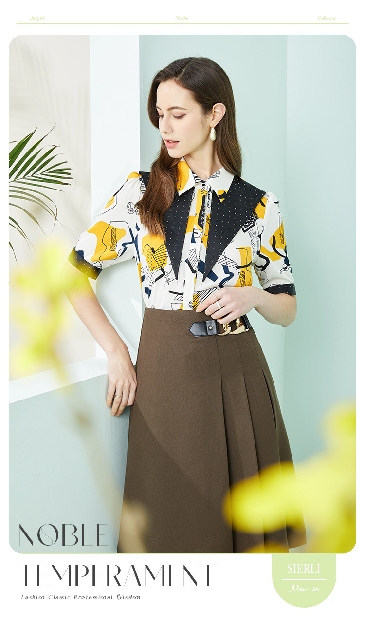 商品名称:秋季撞色翻领波西米亚气质涂鸦碎花烫钻衬衫 097823
