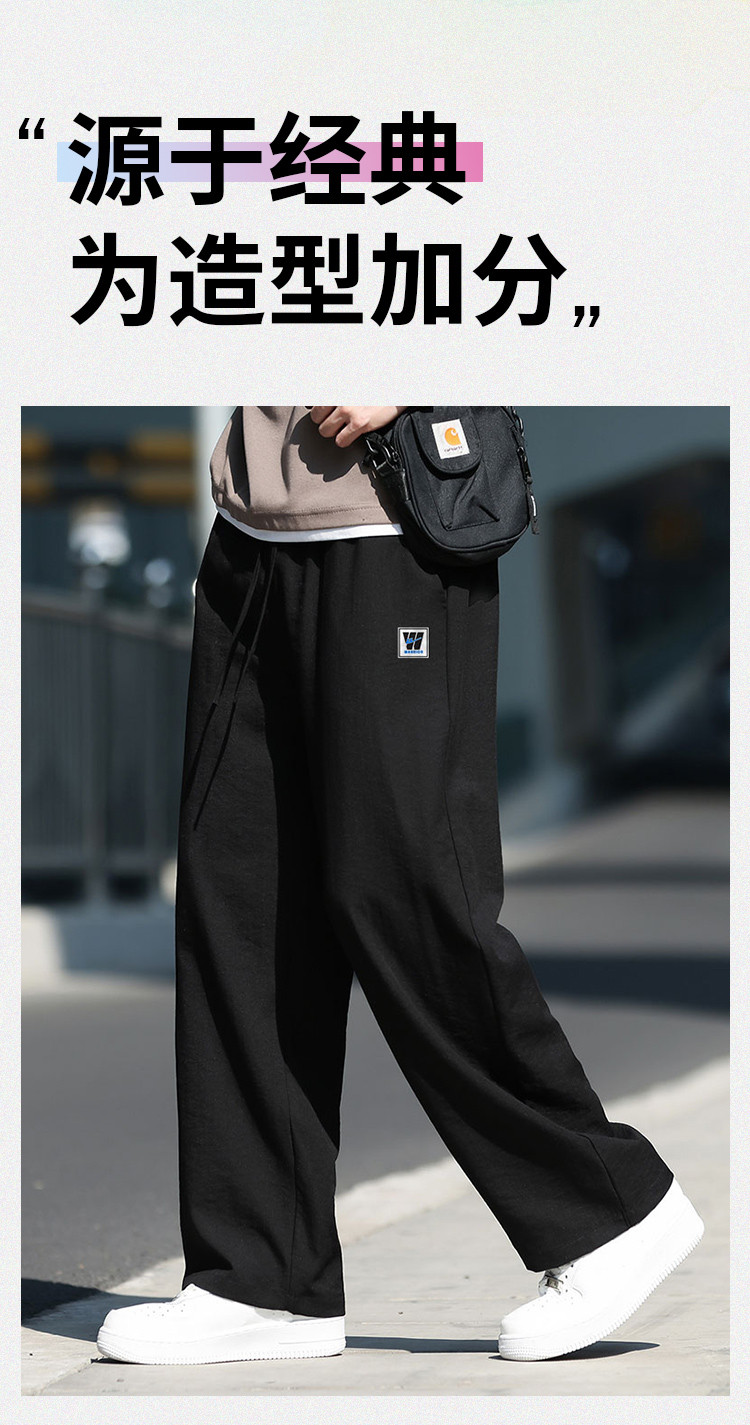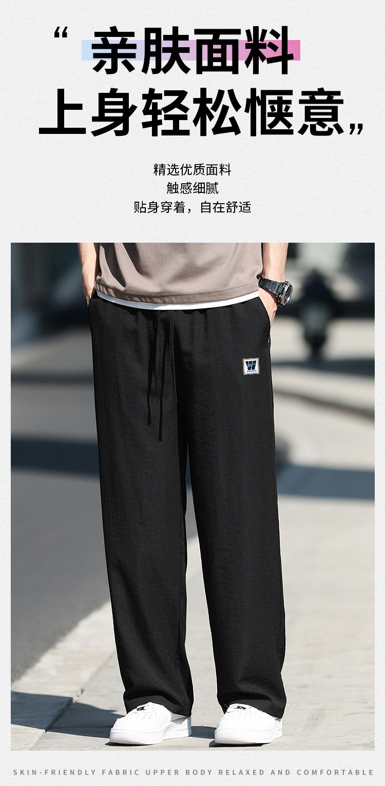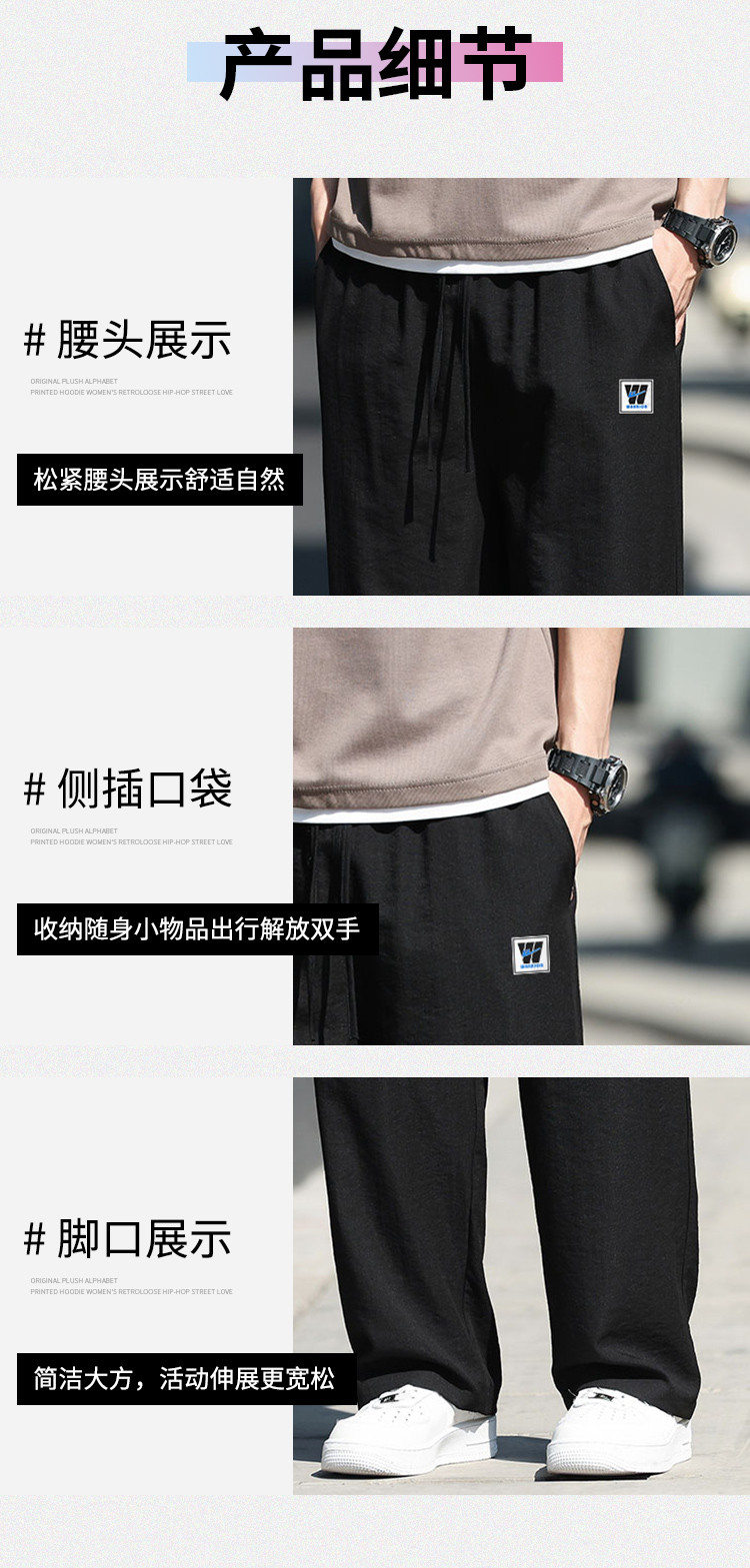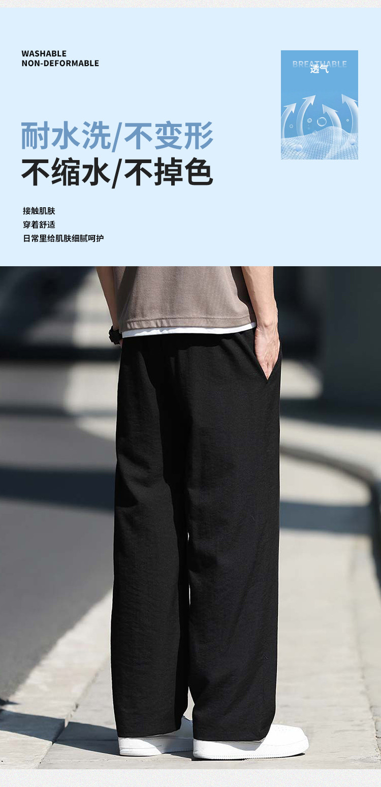 商品名称:夏季清爽透气九分裤男宽松时尚青少年纯色印花九分直筒裤男薄夏 882131