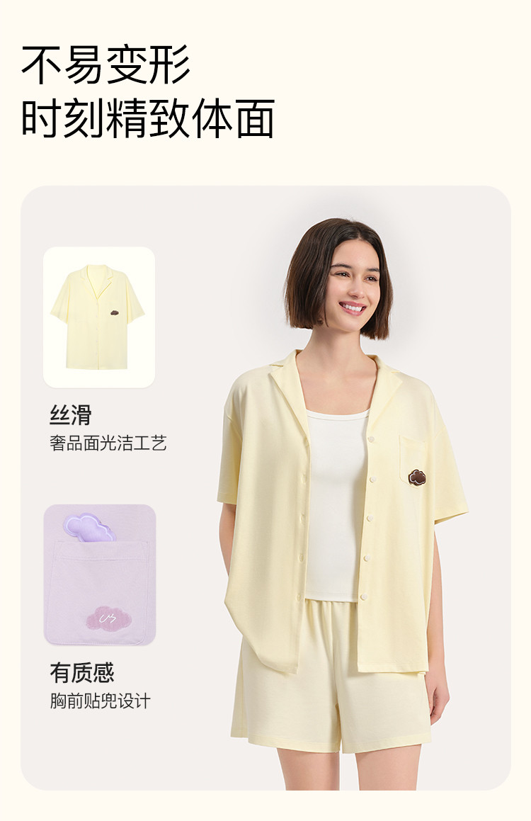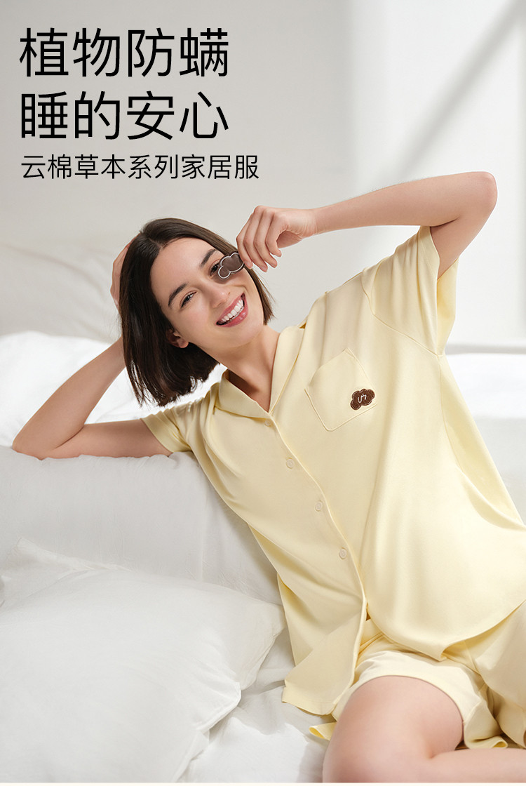 商品名称:【柔软有型】云棉草本开襟不带胸垫短袖短裤女士家居服套装睡衣 570368
