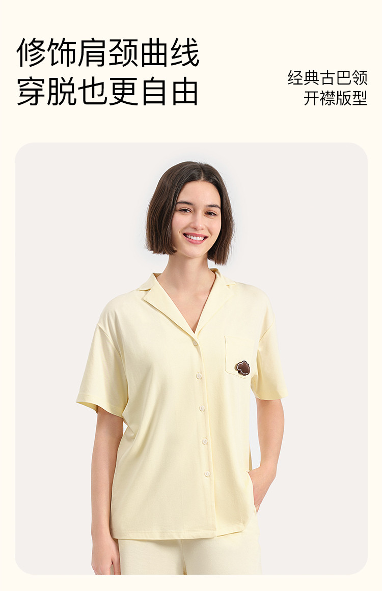 【柔软有型】云棉草本开襟不带胸垫短袖短裤女士家居服套装睡衣 570368
