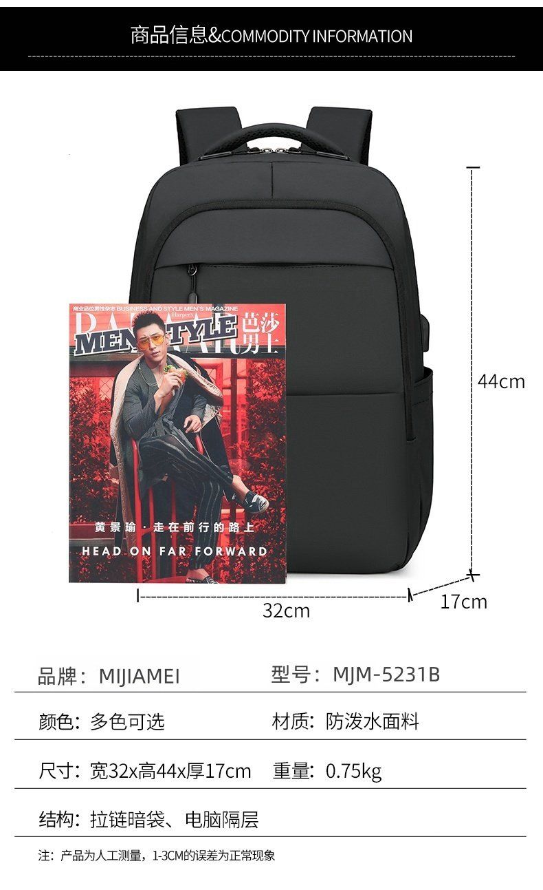 商品名称:米茄美MIJIAMEI韩版男士大容量商务旅行背包经典时尚双肩背包大学生包包MJM-5231B