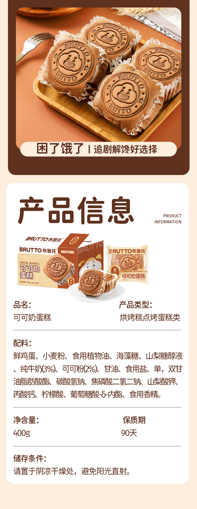 商品名称:布鲁托无糖可可奶蛋糕