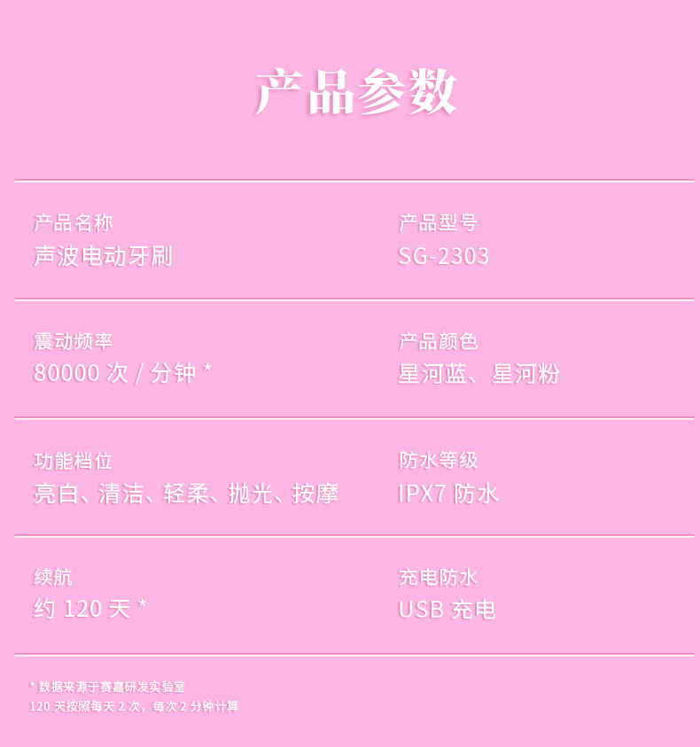 商品名称:seago/赛嘉声波电动牙刷SG-2303