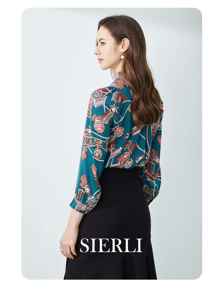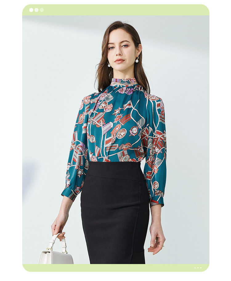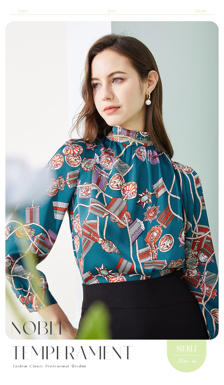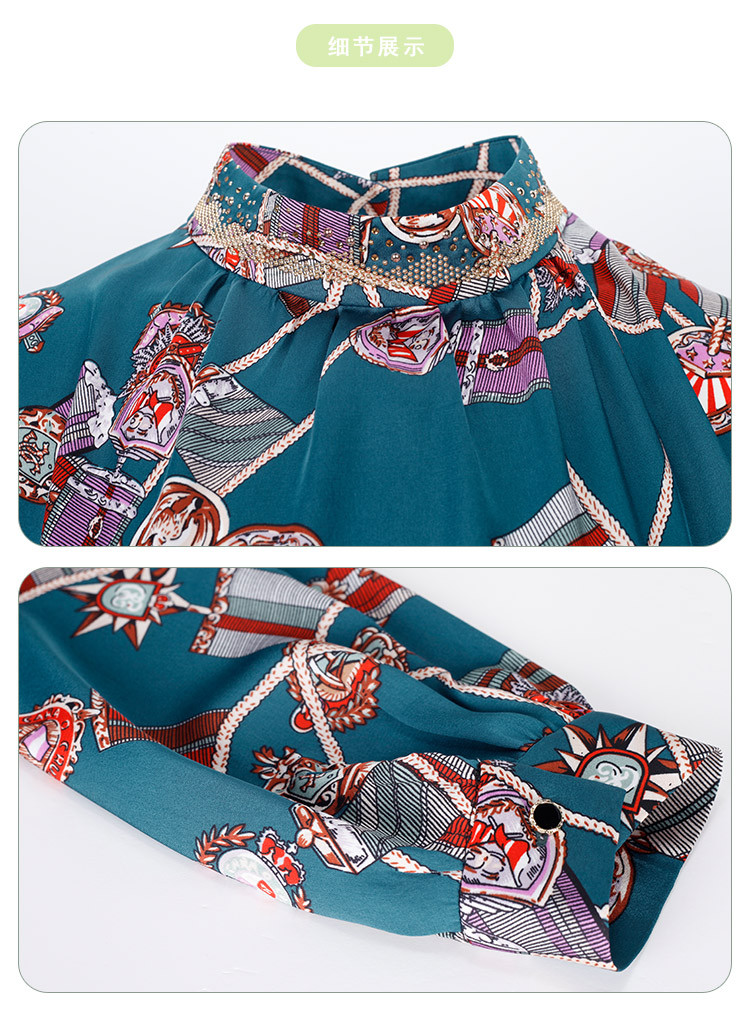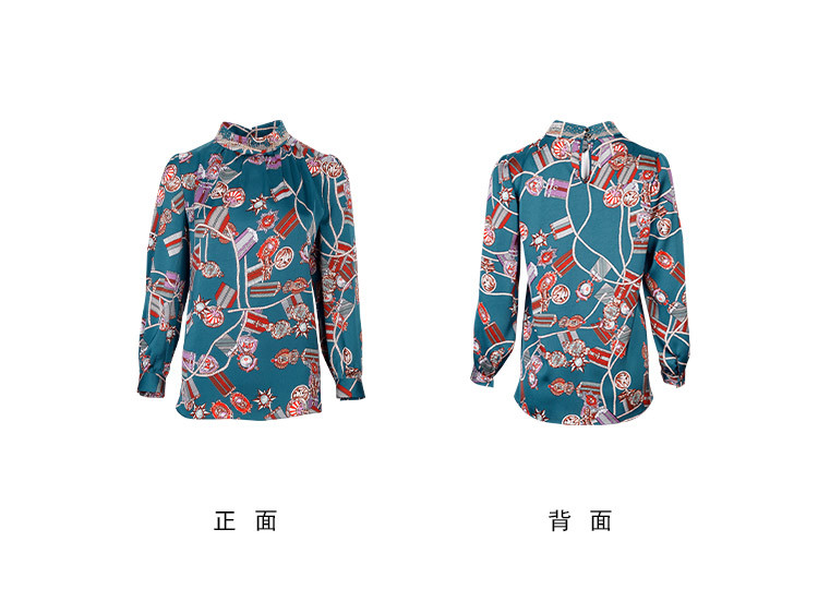 商场同款春季暗黑系复古港风印花立领长袖衬衣 570783