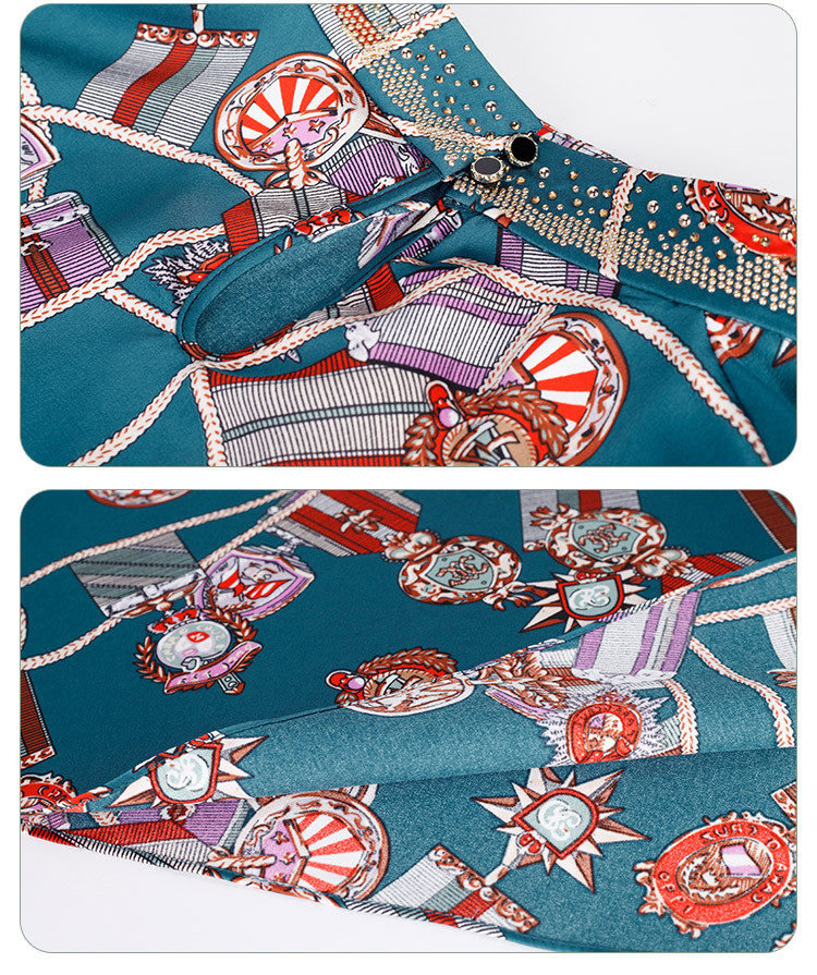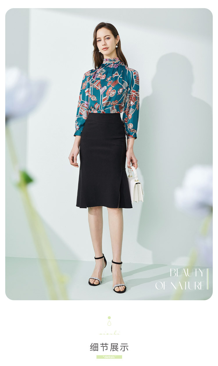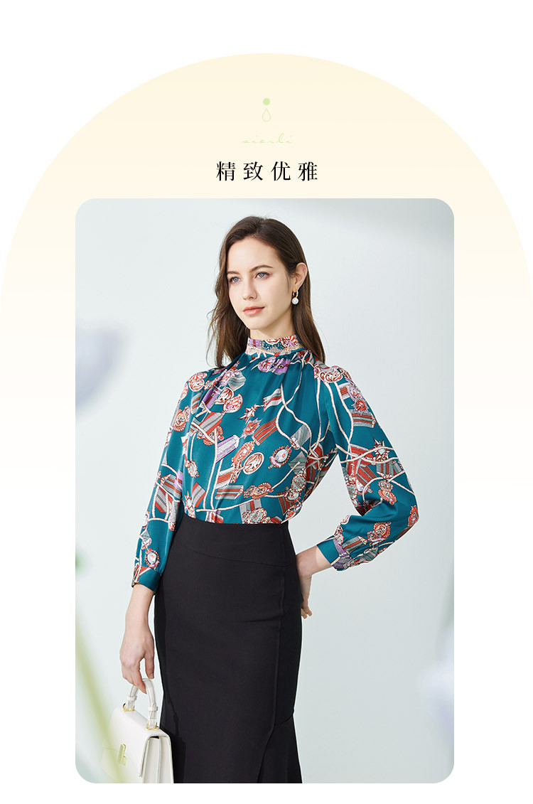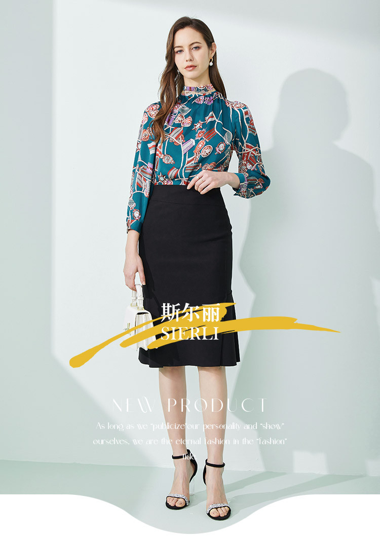 商场同款春季暗黑系复古港风印花立领长袖衬衣 570783