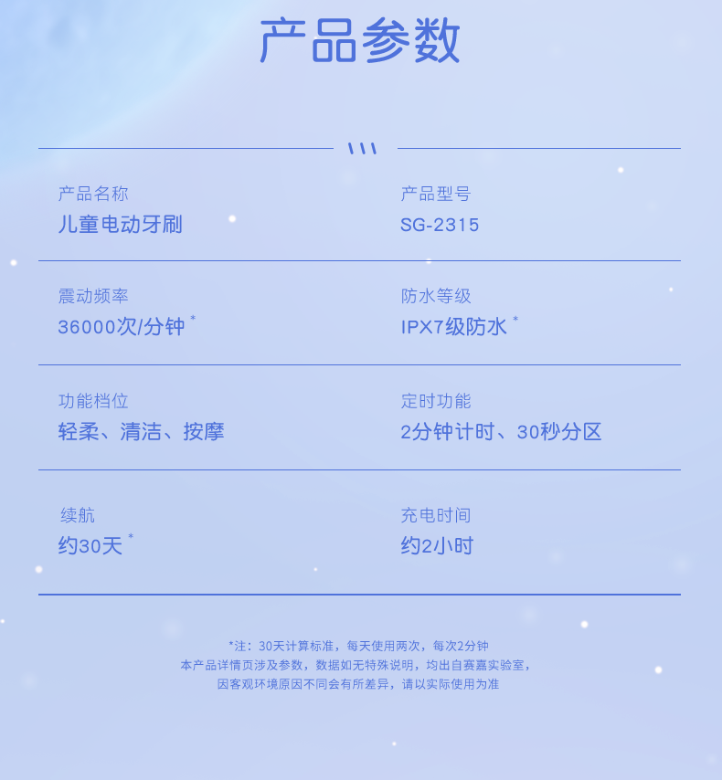 商品名称:seago/赛嘉儿童电动牙刷SG-2315