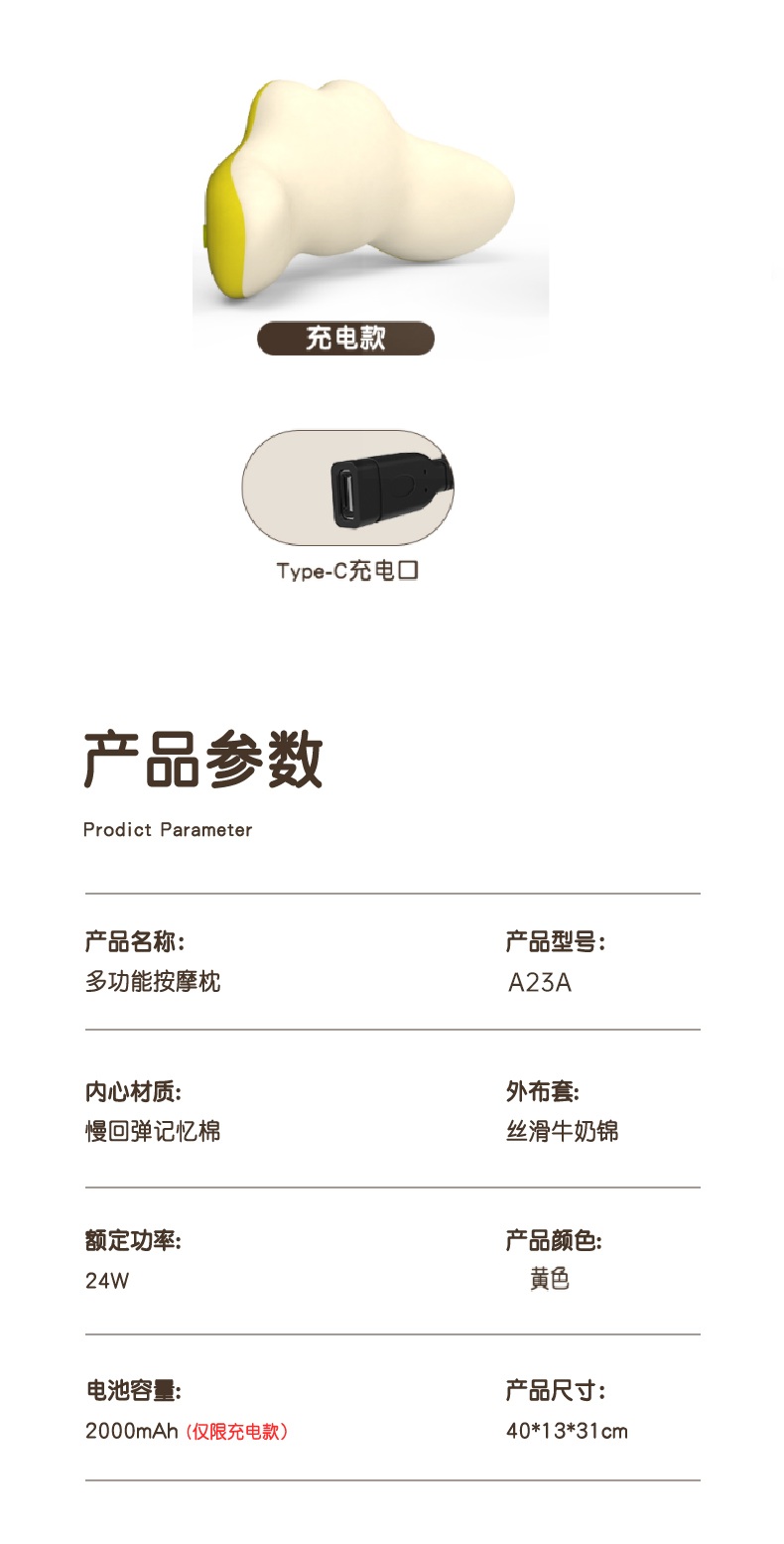 商品名称:CIORIS/凯伦诗充电款多功能按摩枕A23A