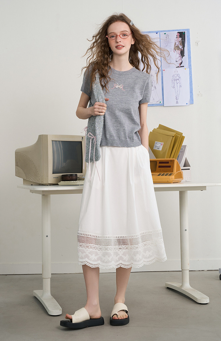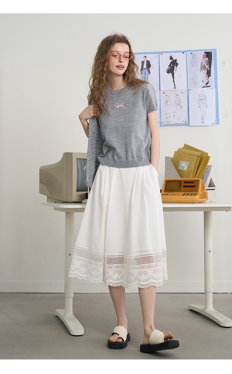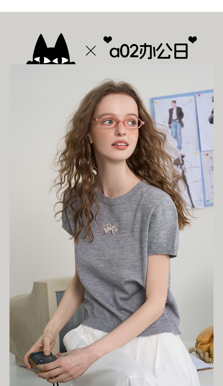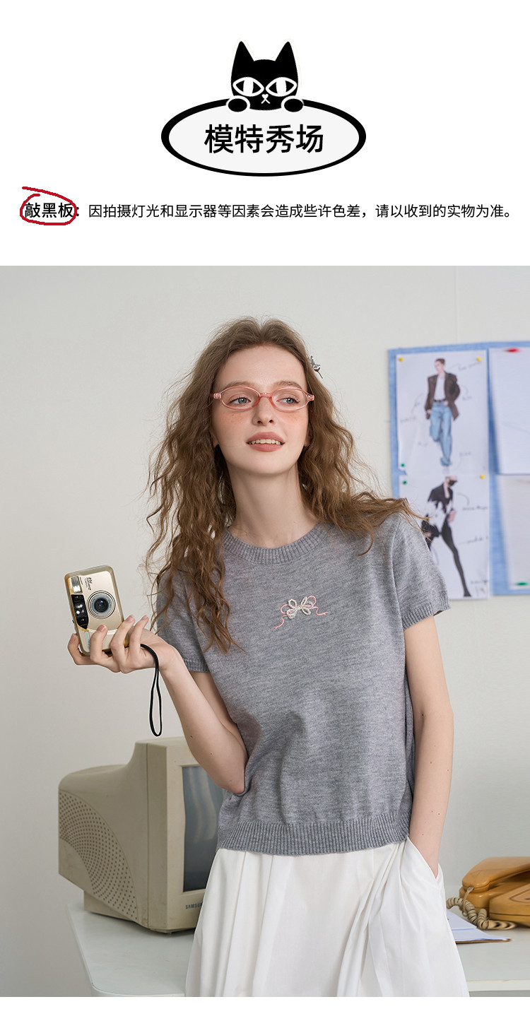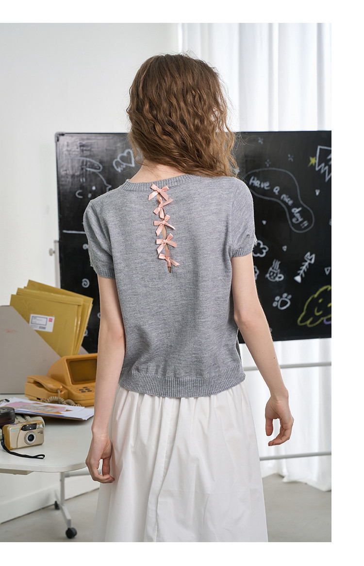 商品名称:韩系后背镂空蝴蝶结短袖上衣2025夏季休闲百搭女式针织衫 410141