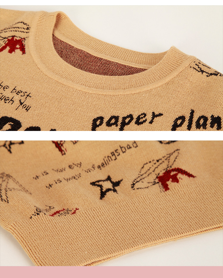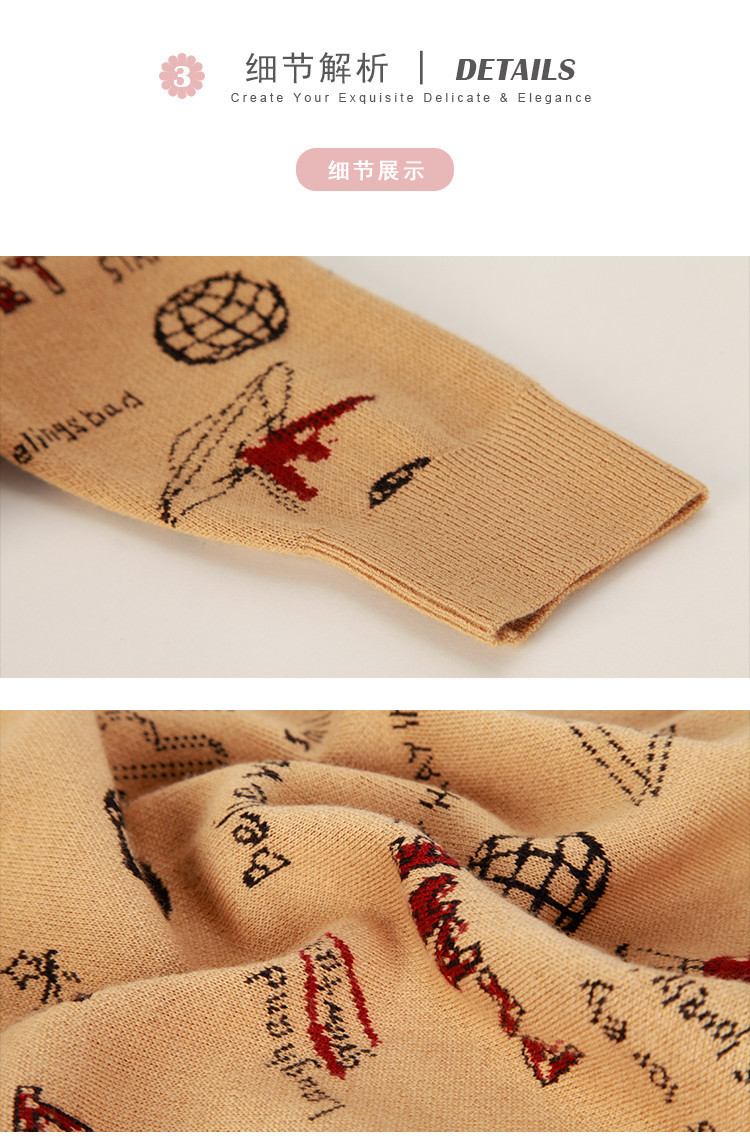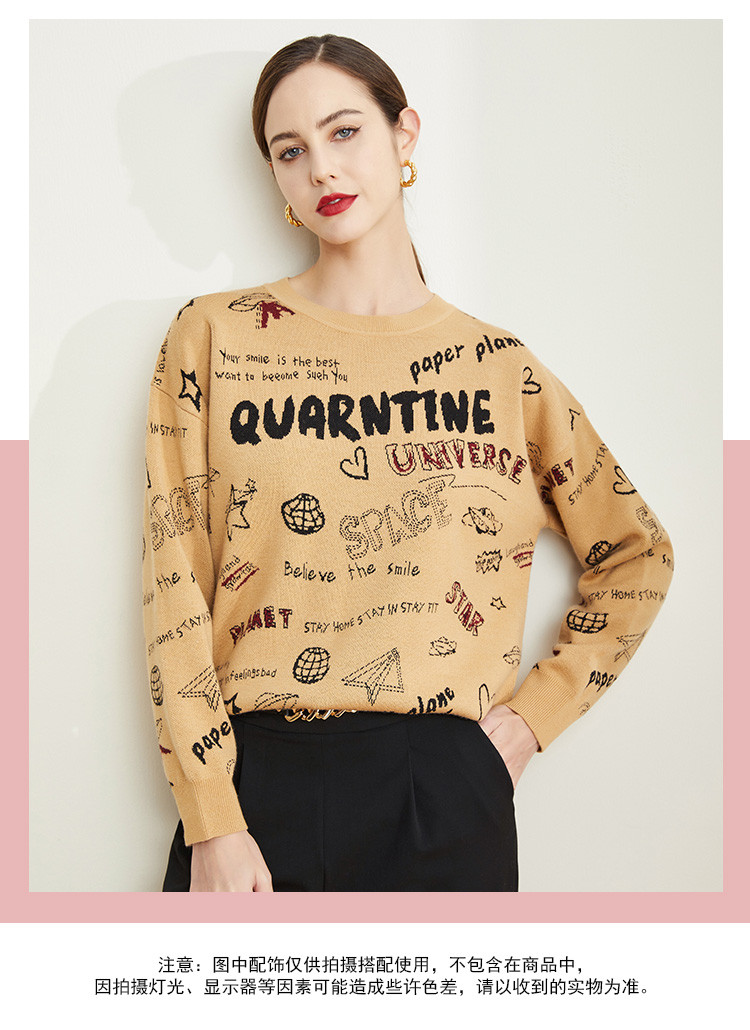 [涂鸦图案]秋季慵懒休闲风时尚减龄针织衫女上衣套头衫 026527