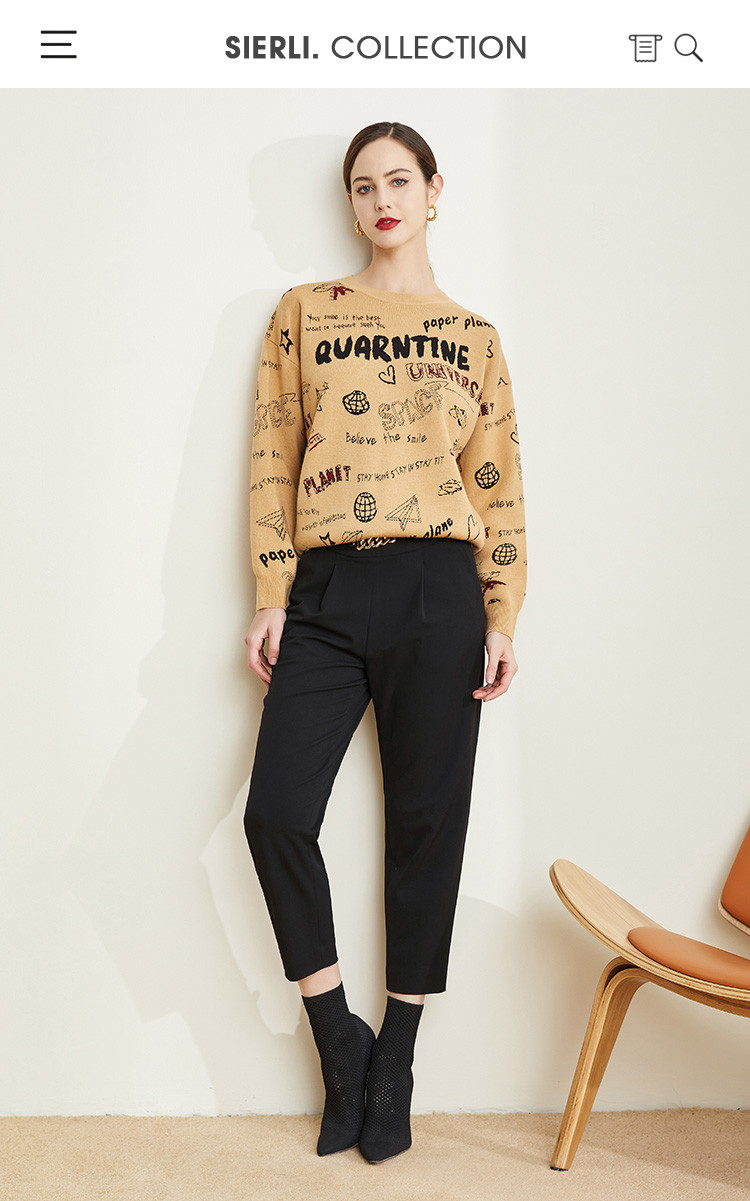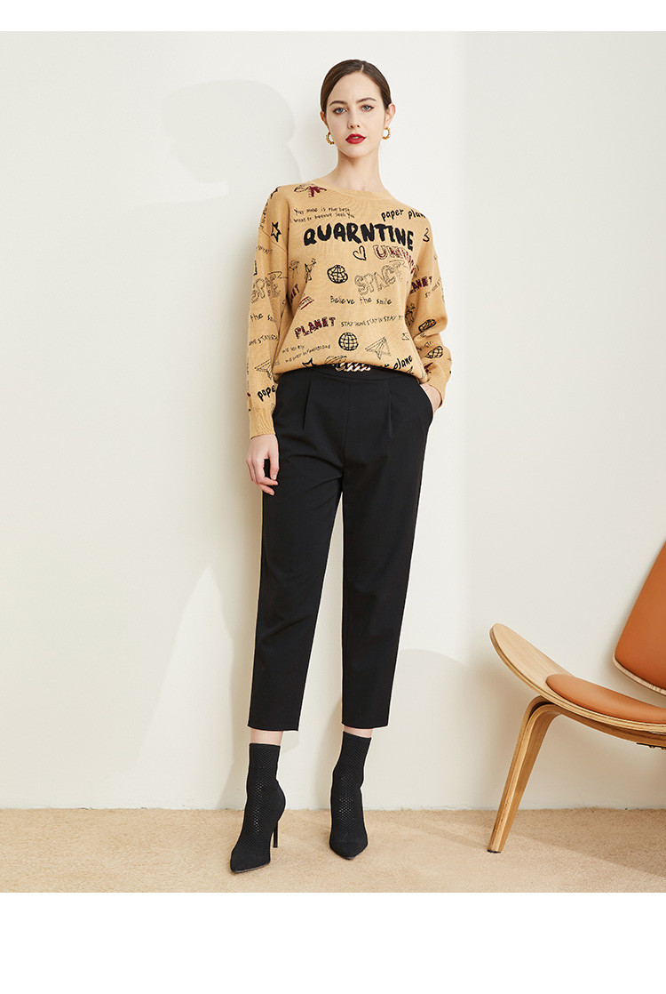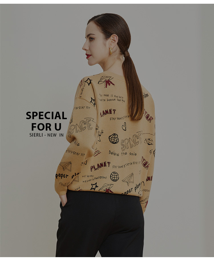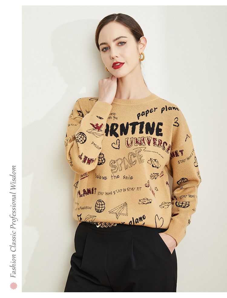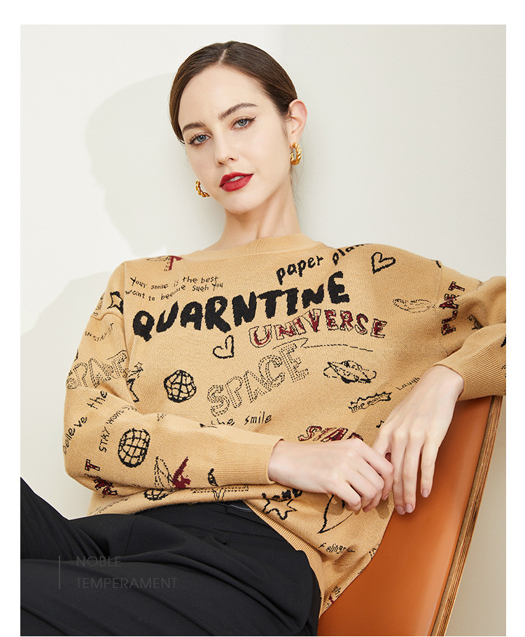 商品名称:[涂鸦图案]秋季慵懒休闲风时尚减龄针织衫女上衣套头衫 026527
