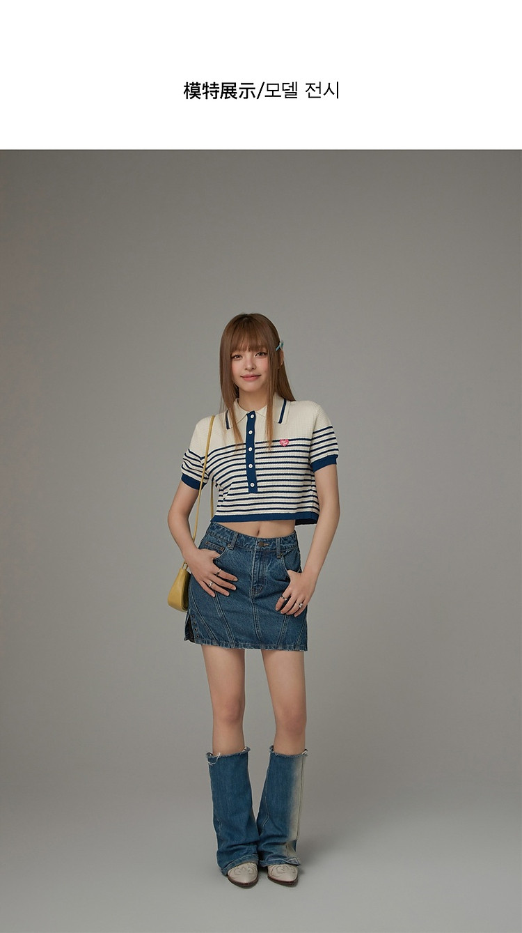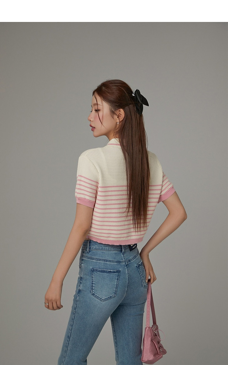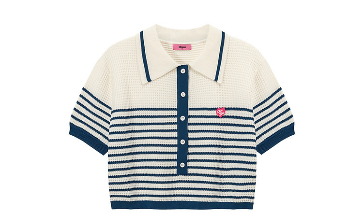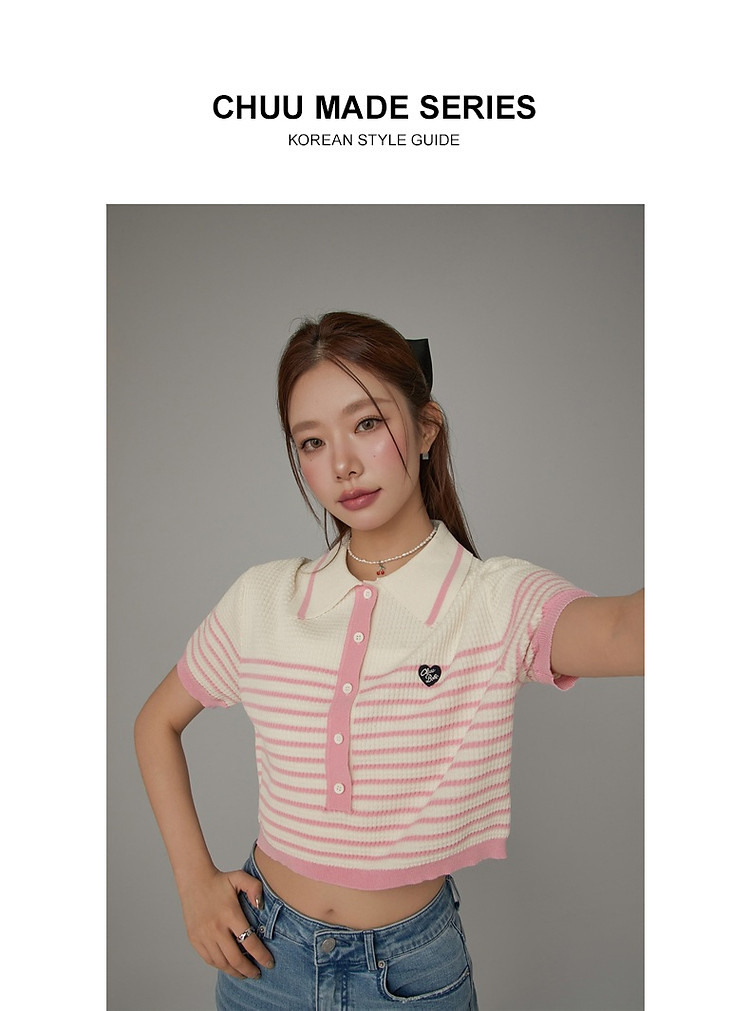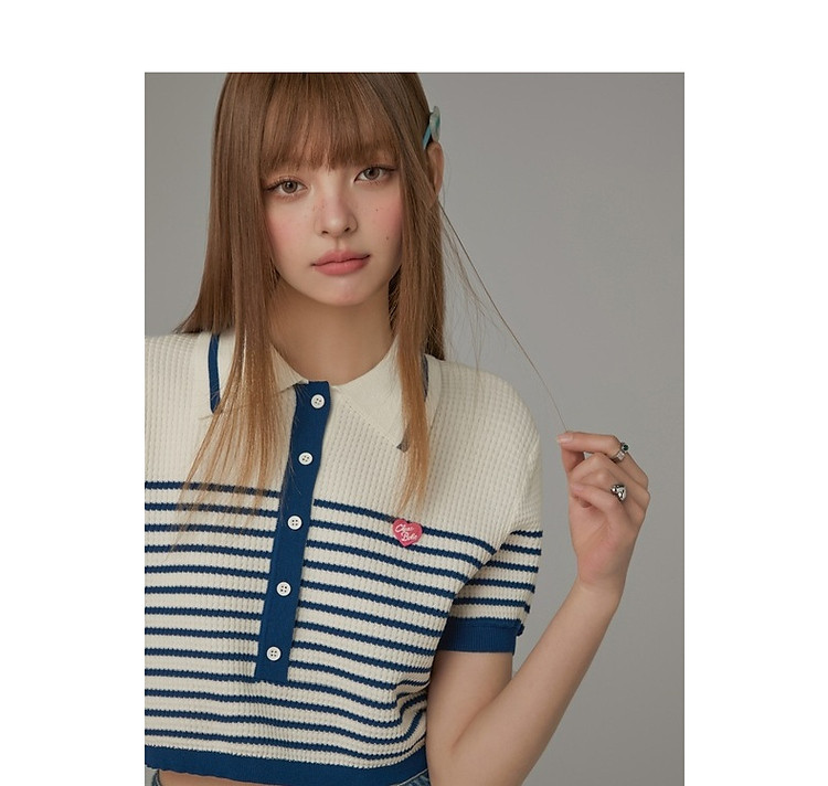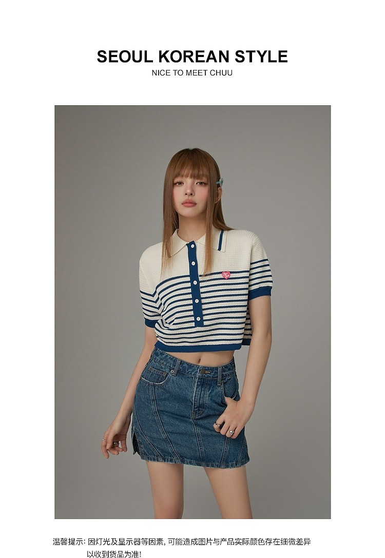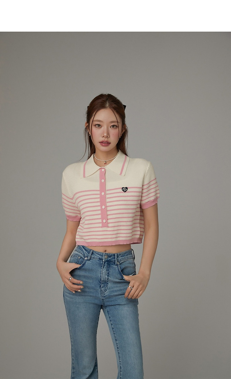商品名称:条纹短袖针织衫女2025夏甜美减龄洋气翻领爱心短款 820563