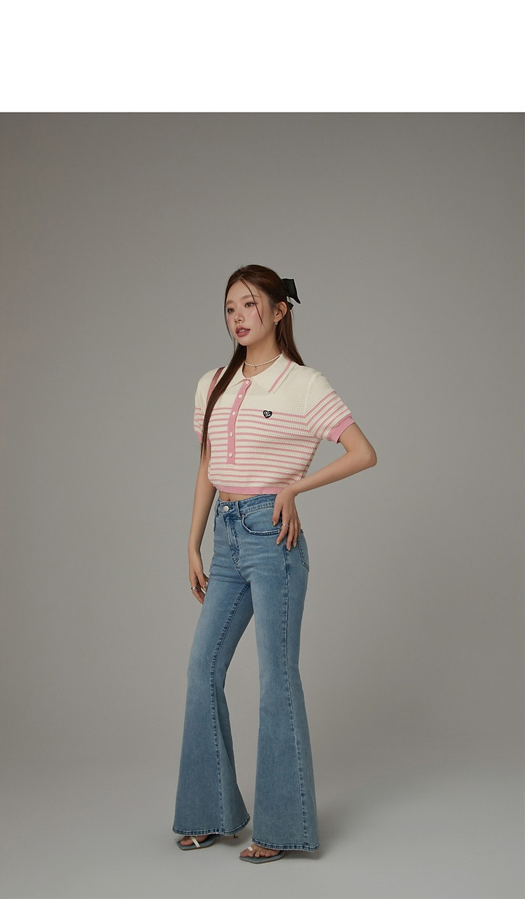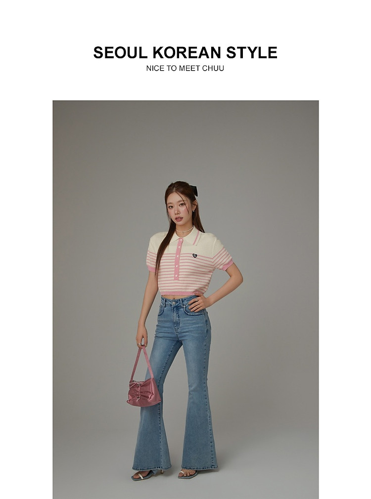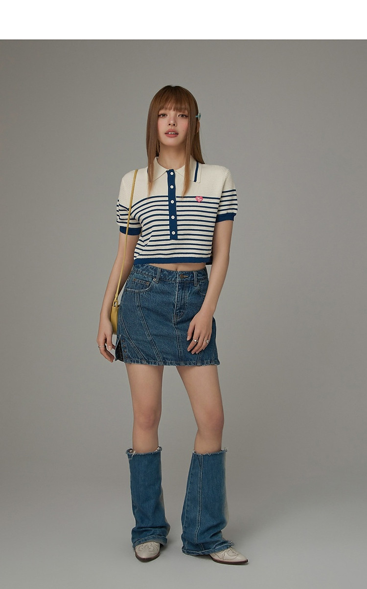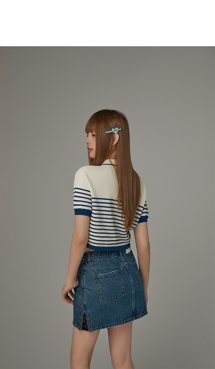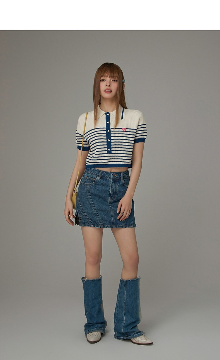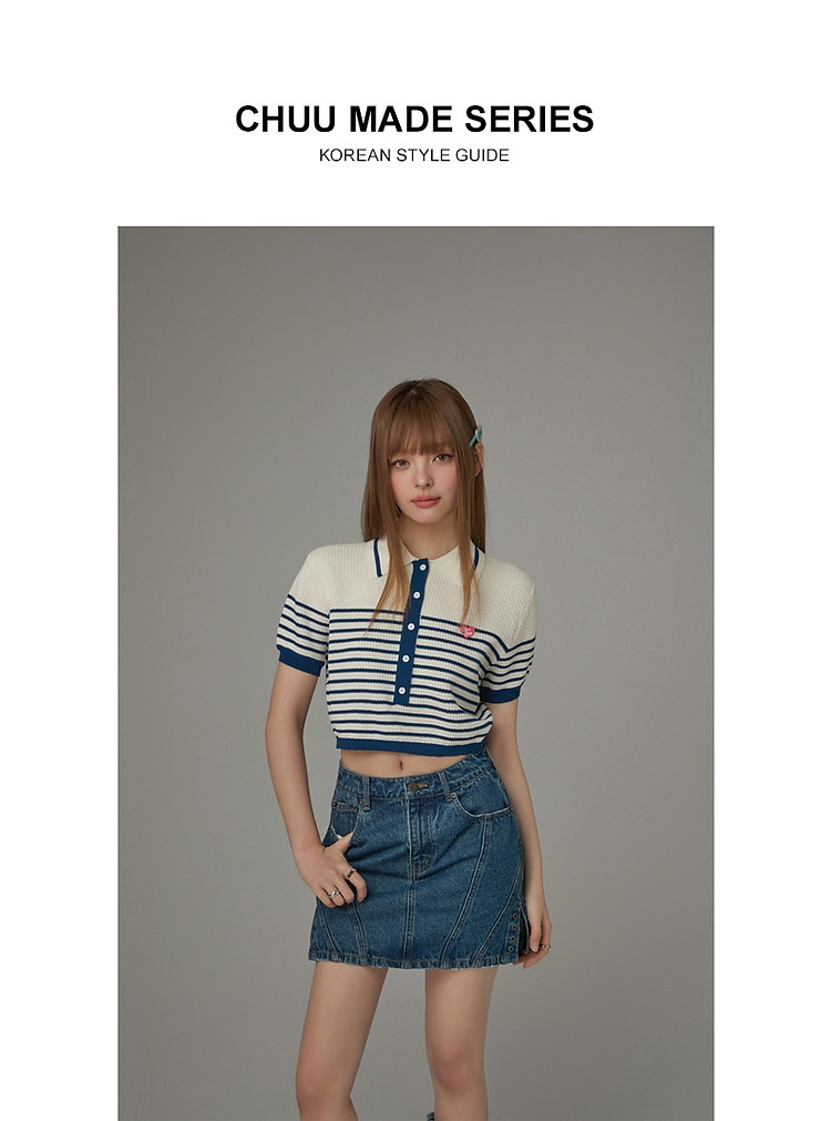 商品名称:条纹短袖针织衫女2025夏甜美减龄洋气翻领爱心短款 820563