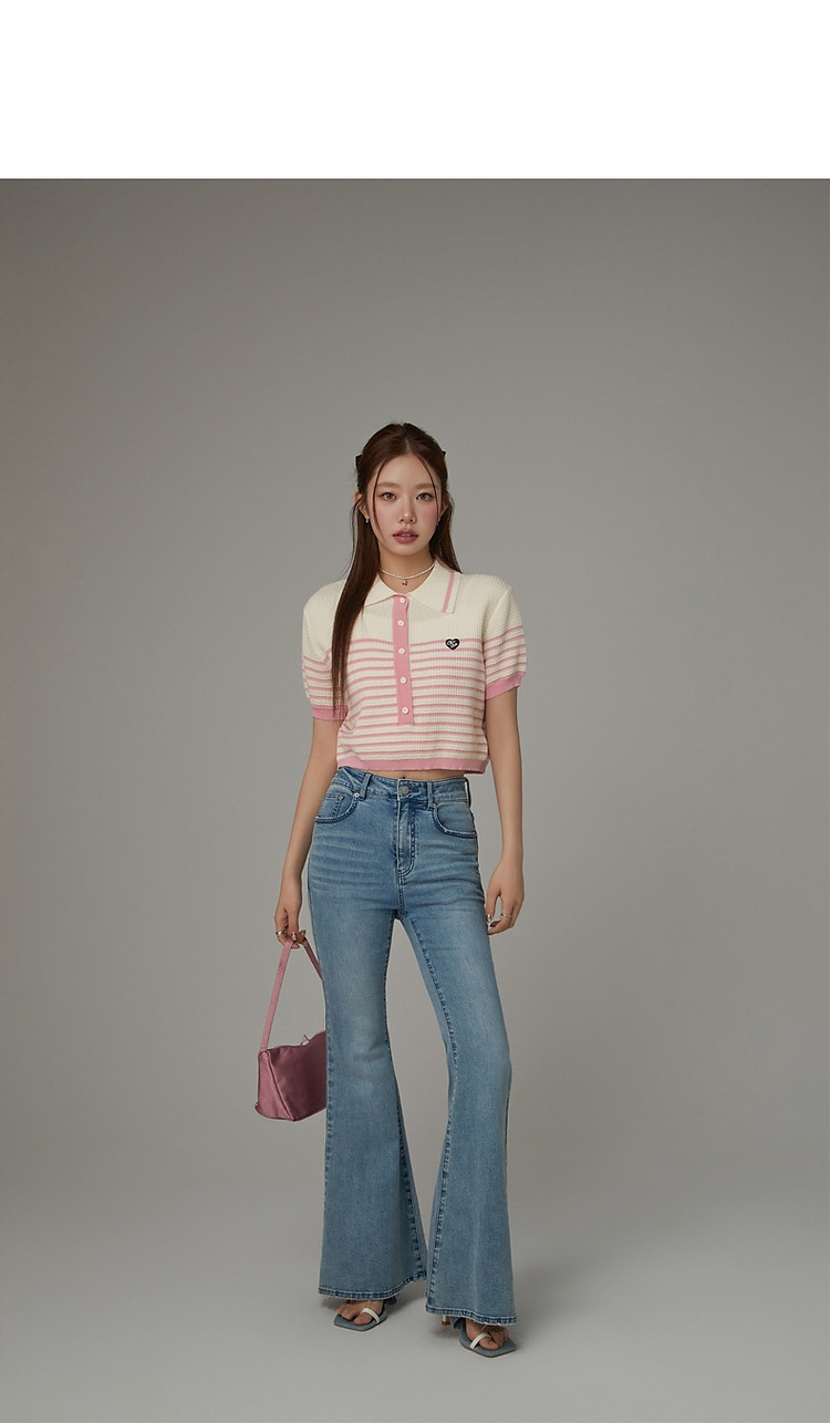 条纹短袖针织衫女2025夏甜美减龄洋气翻领爱心短款 820563