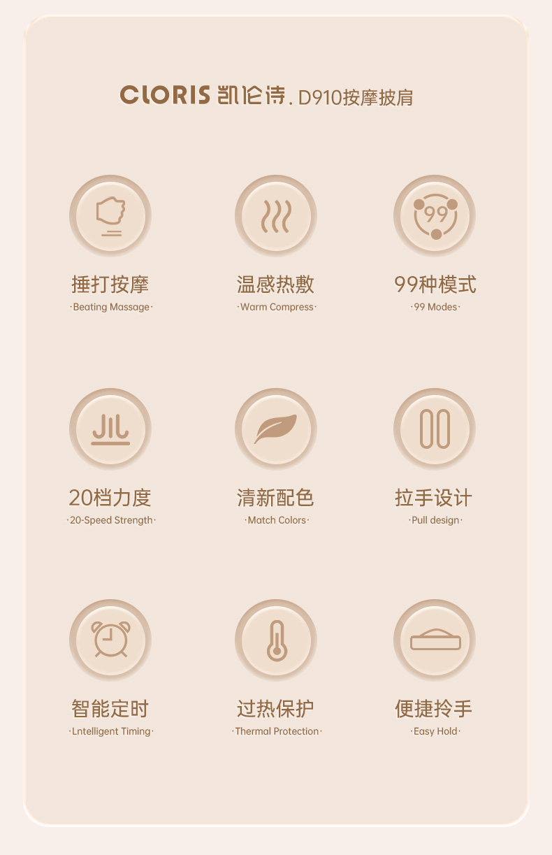商品名称:CIORIS/凯伦诗多功能按摩枕-蓝色CLORIS-D910