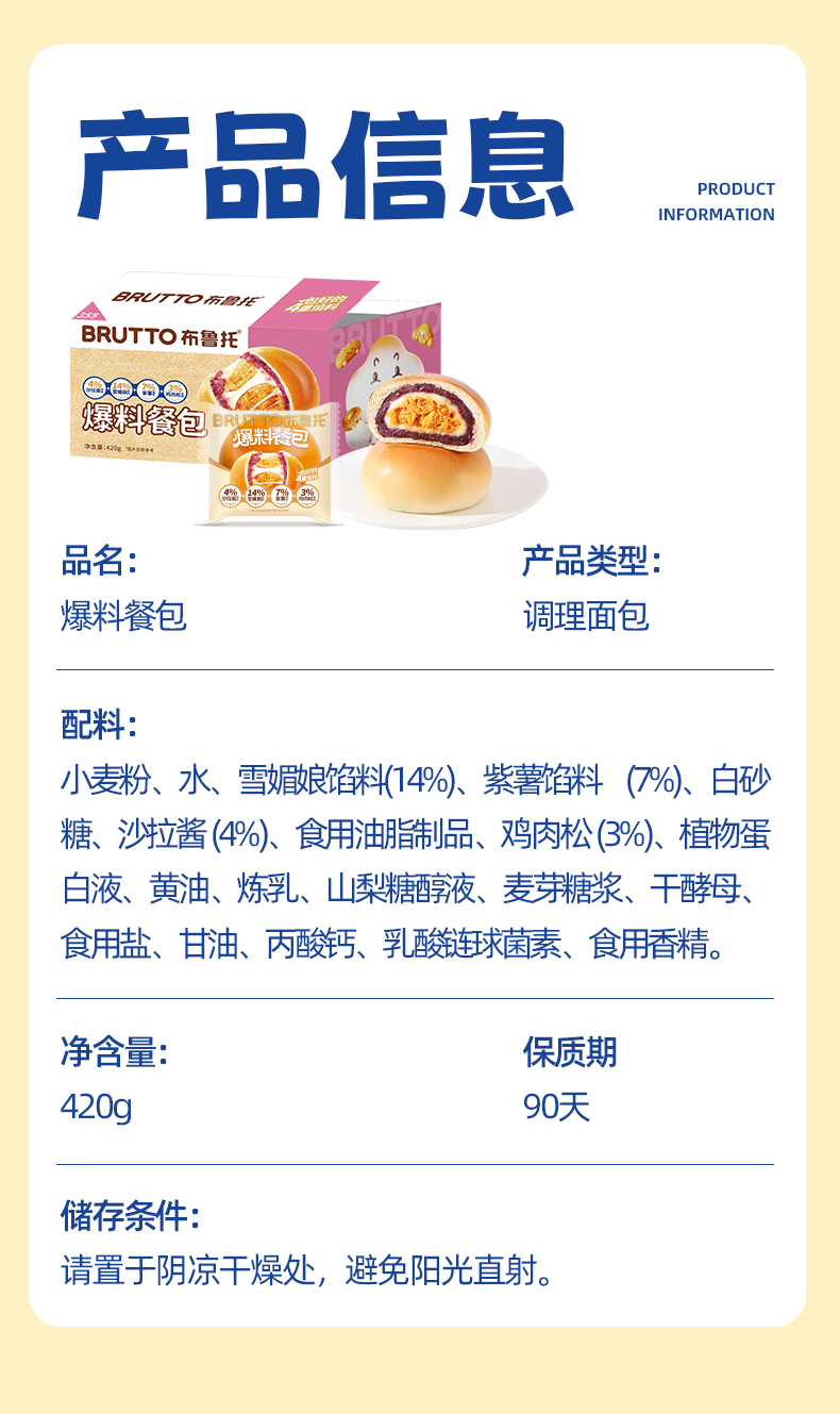 商品名称:布鲁托爆料餐包420g