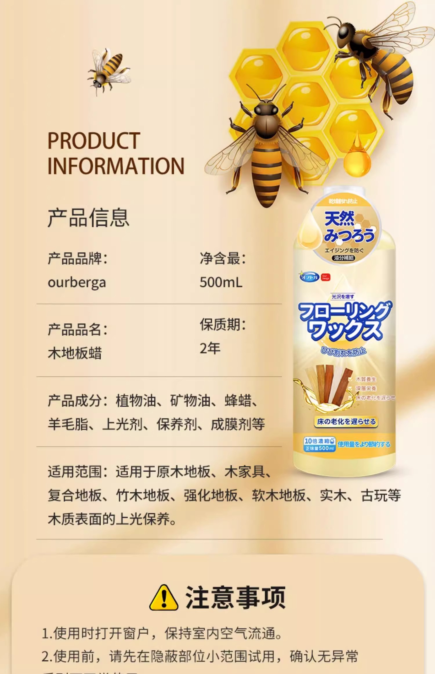 商品名称:ourberga木地板保养蜡500ml cjob41039