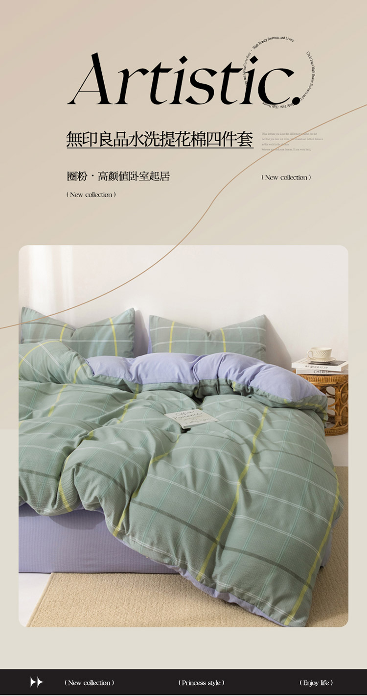 无印良品时尚星际水洗提花棉床品四件套200*230cm