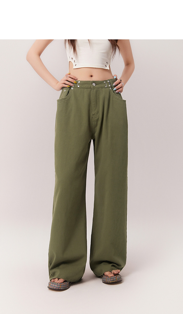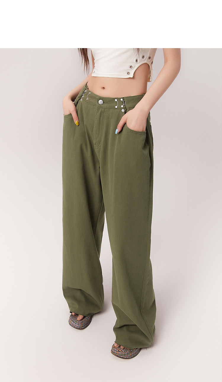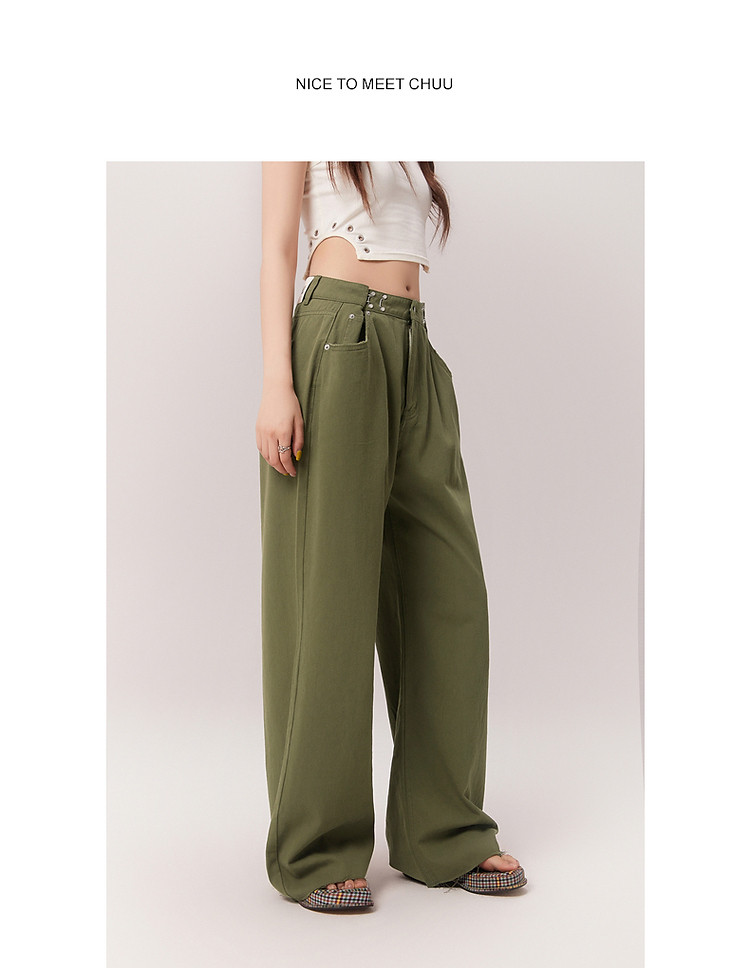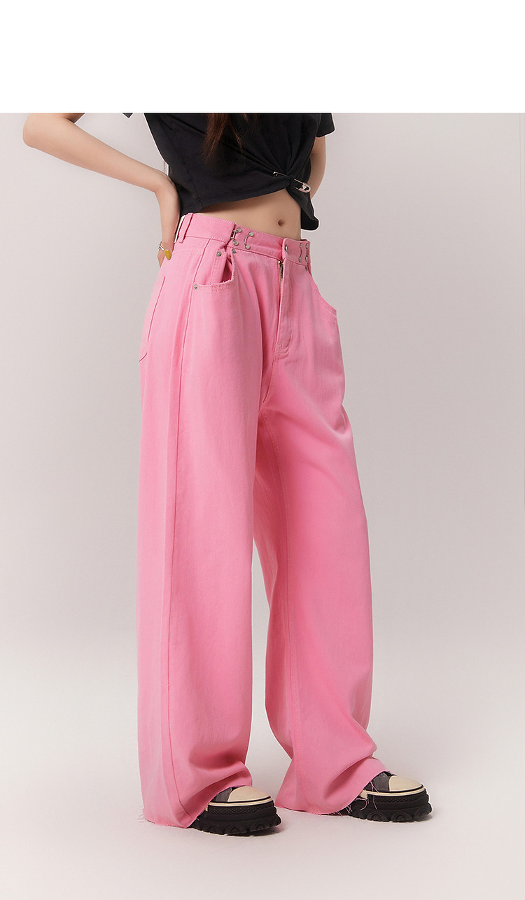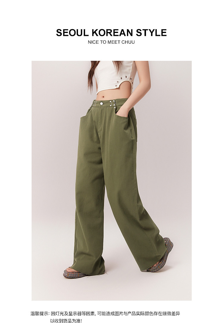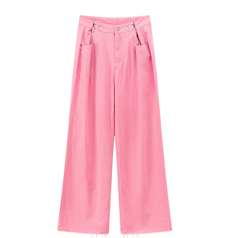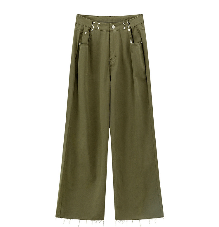 商品名称:纯色毛边休闲裤女2025夏设计感褶皱宽松阔腿长裤子 479251