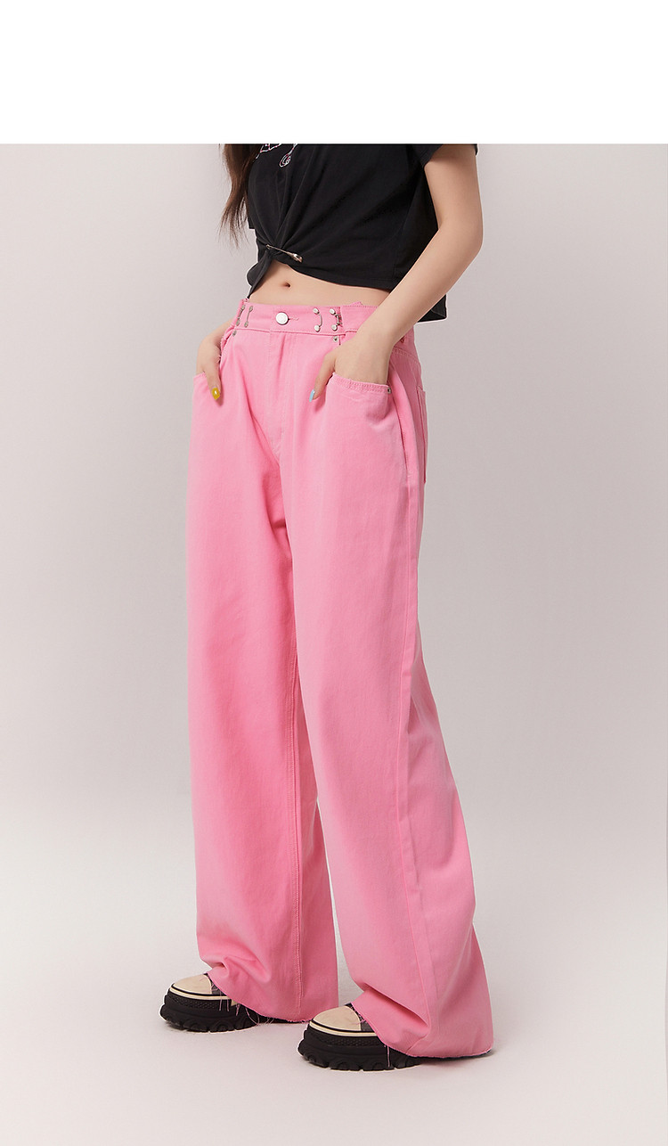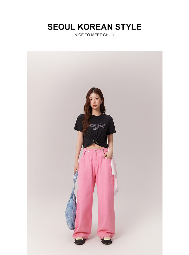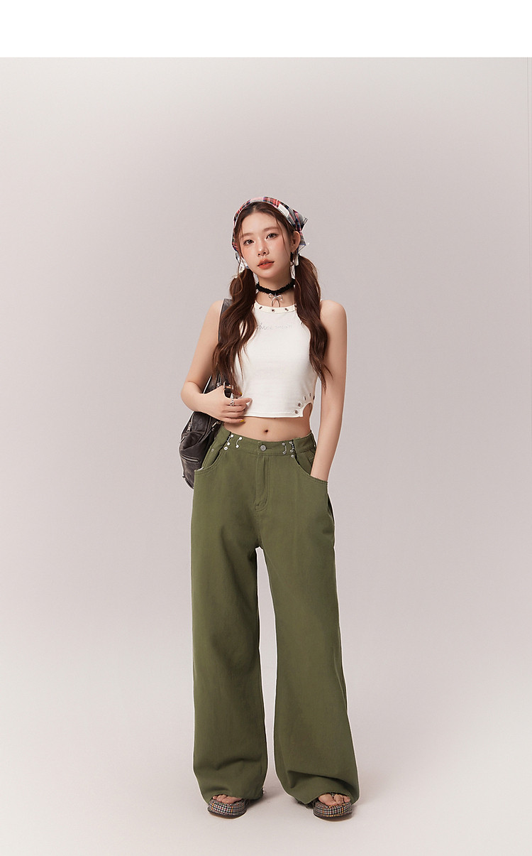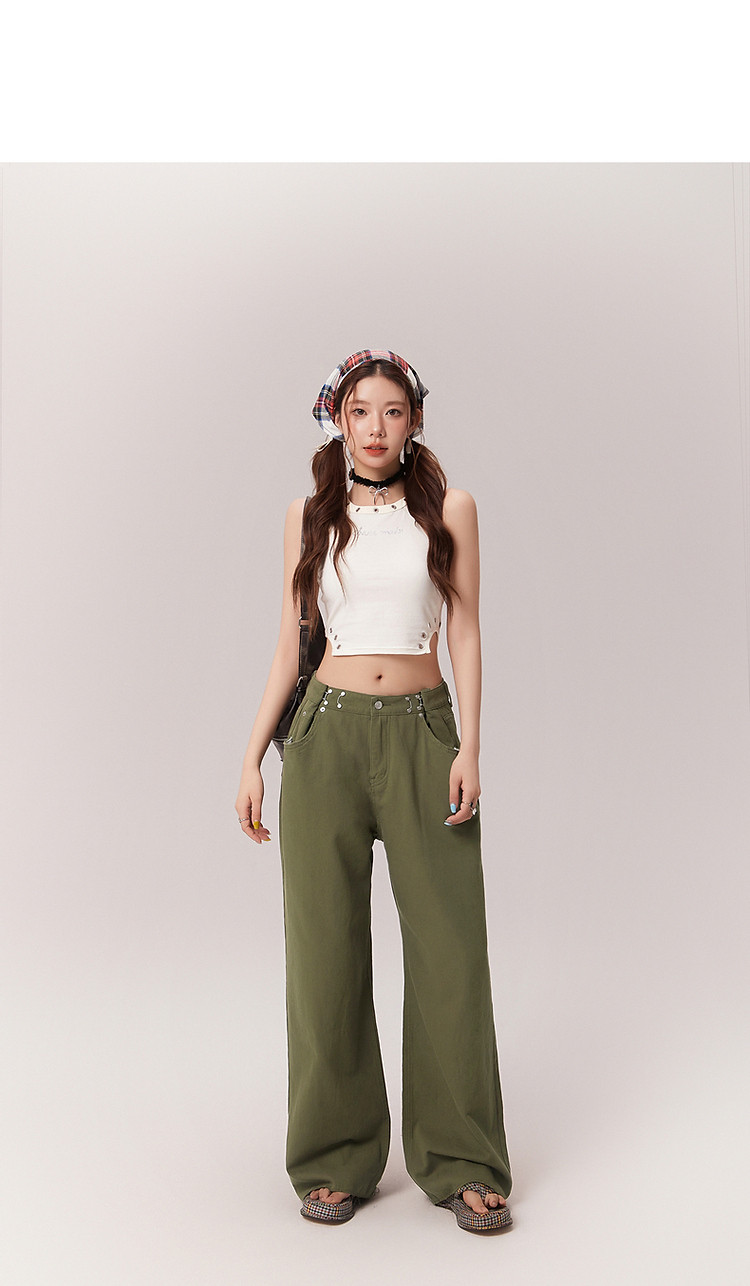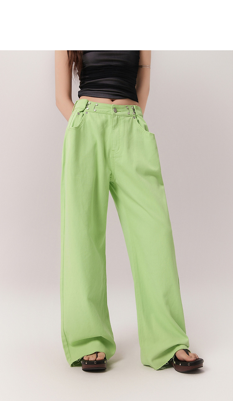 商品名称:纯色毛边休闲裤女2025夏设计感褶皱宽松阔腿长裤子 479251