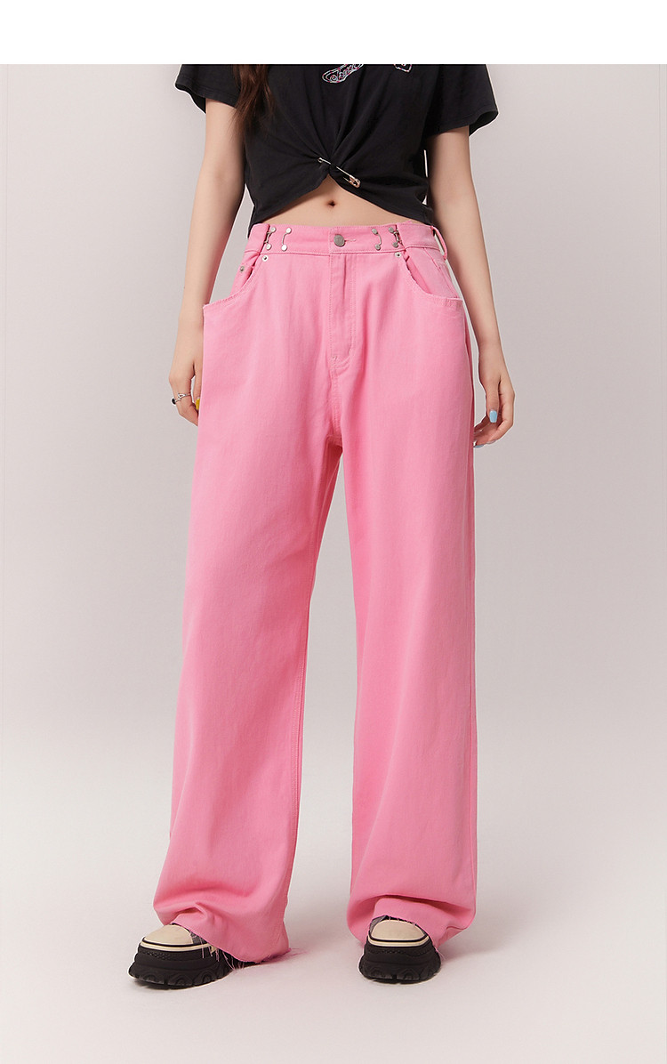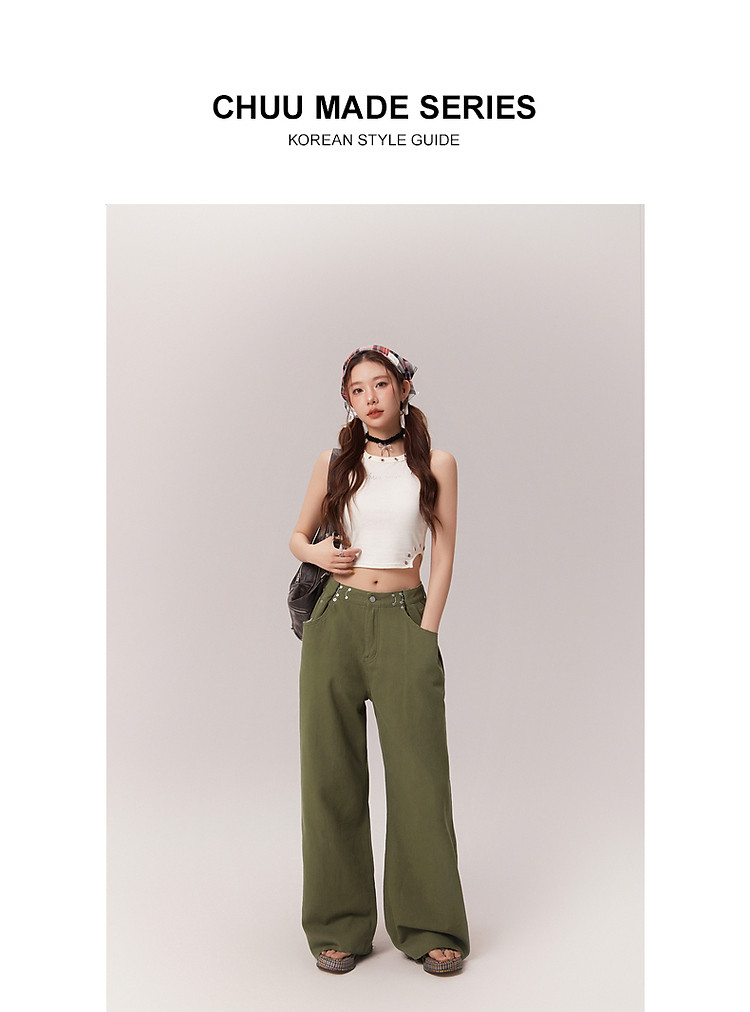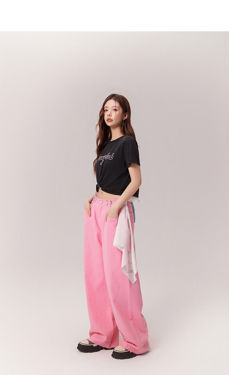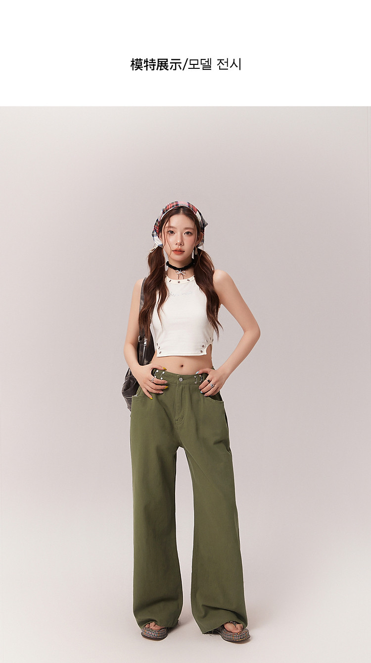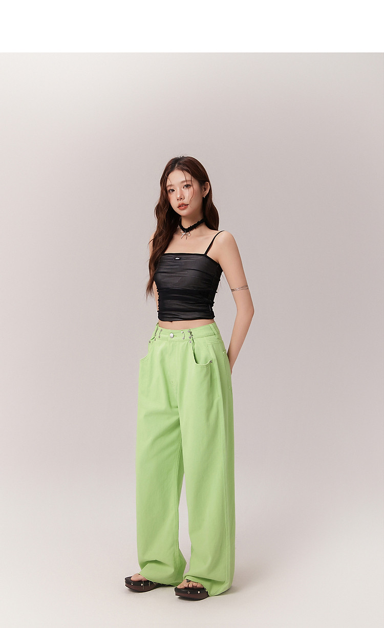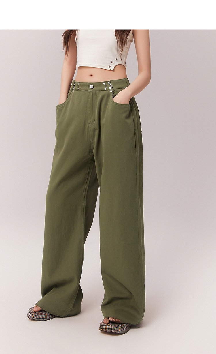 商品名称:纯色毛边休闲裤女2025夏设计感褶皱宽松阔腿长裤子 479251