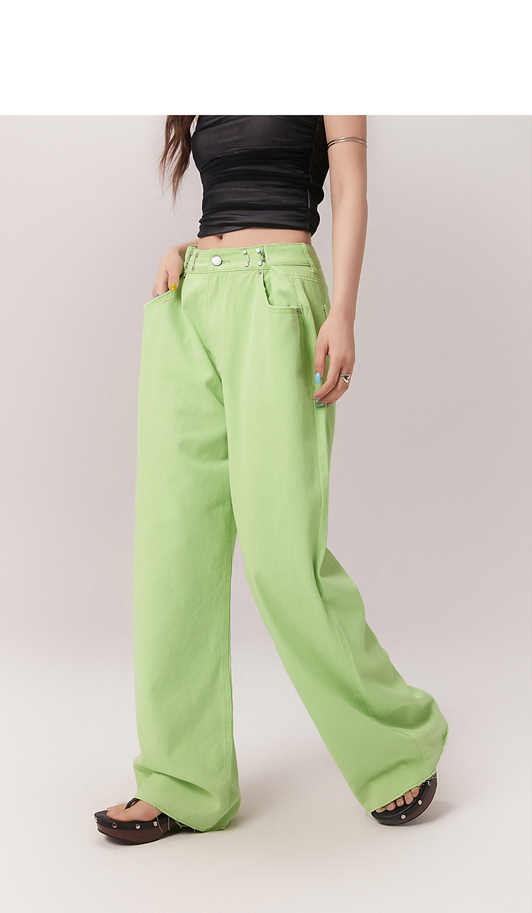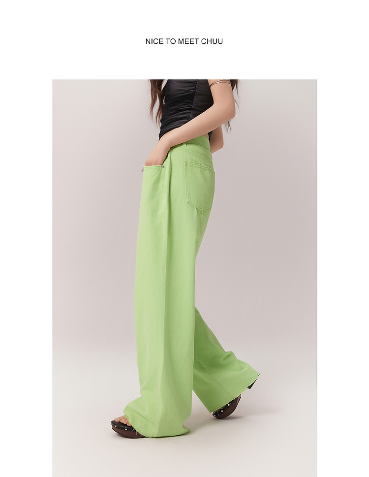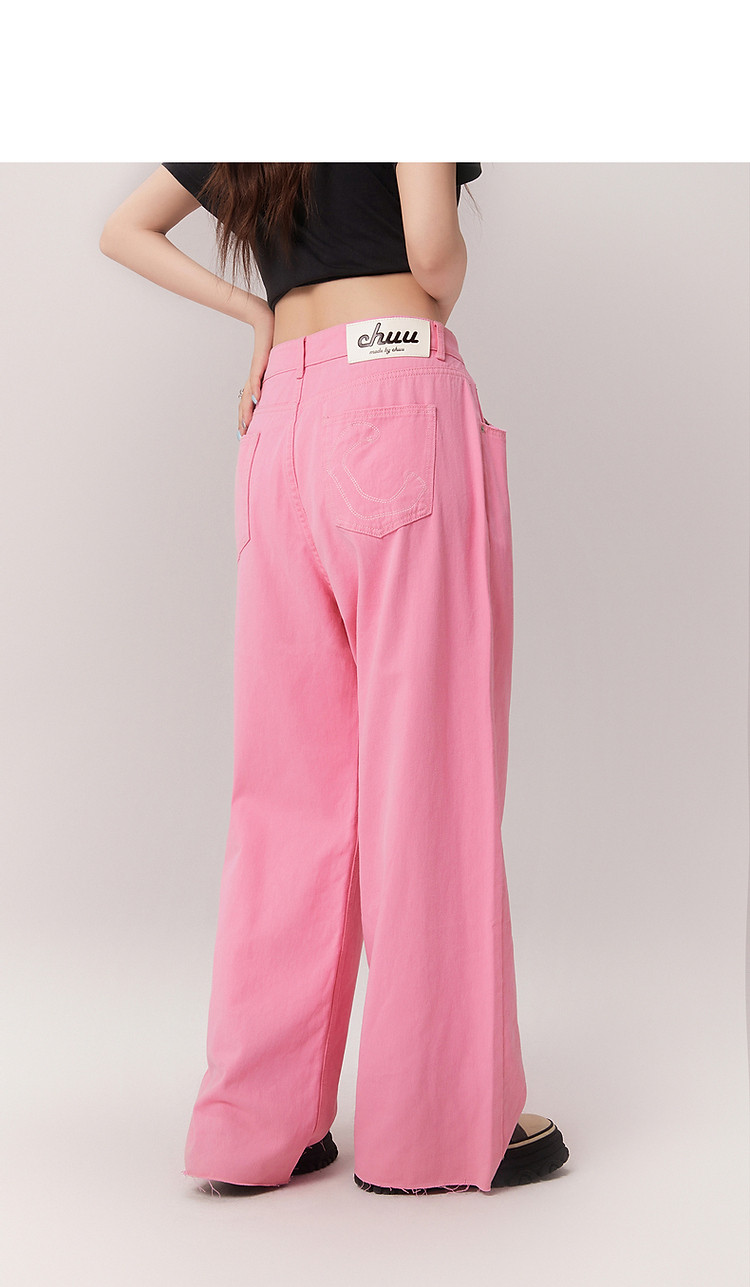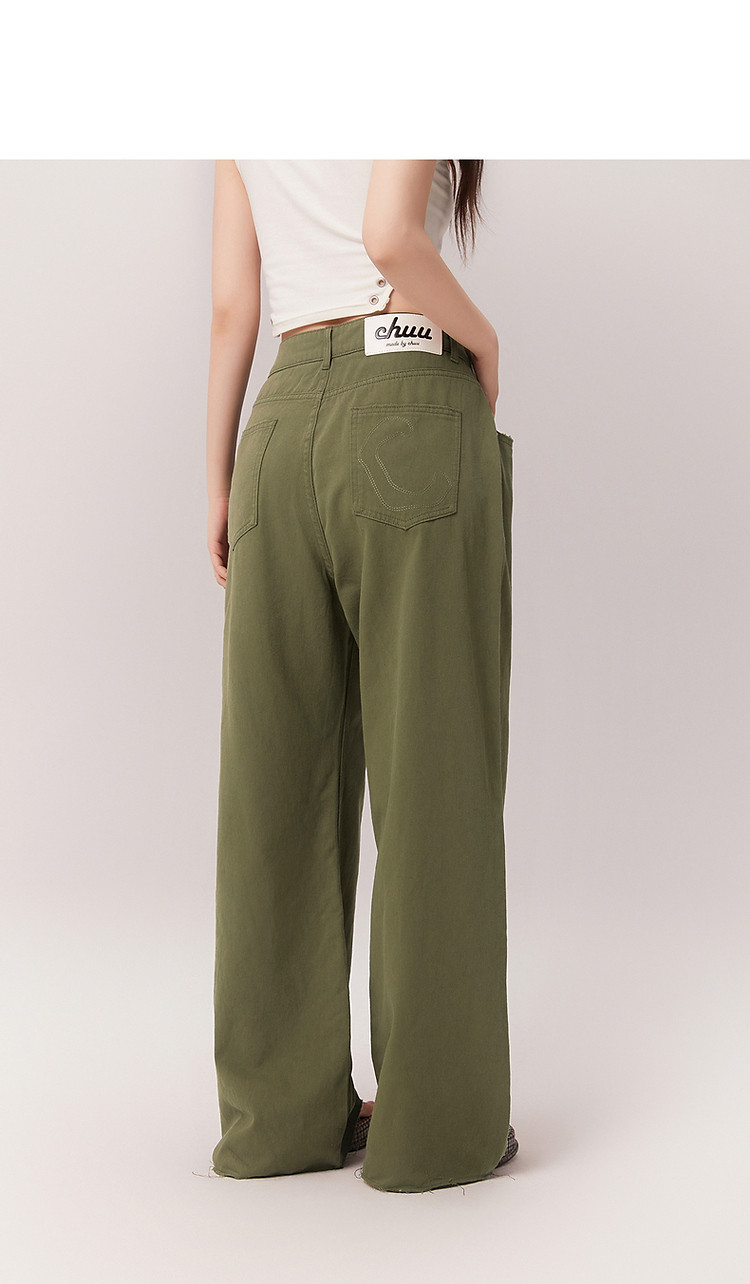 纯色毛边休闲裤女2025夏设计感褶皱宽松阔腿长裤子 479251