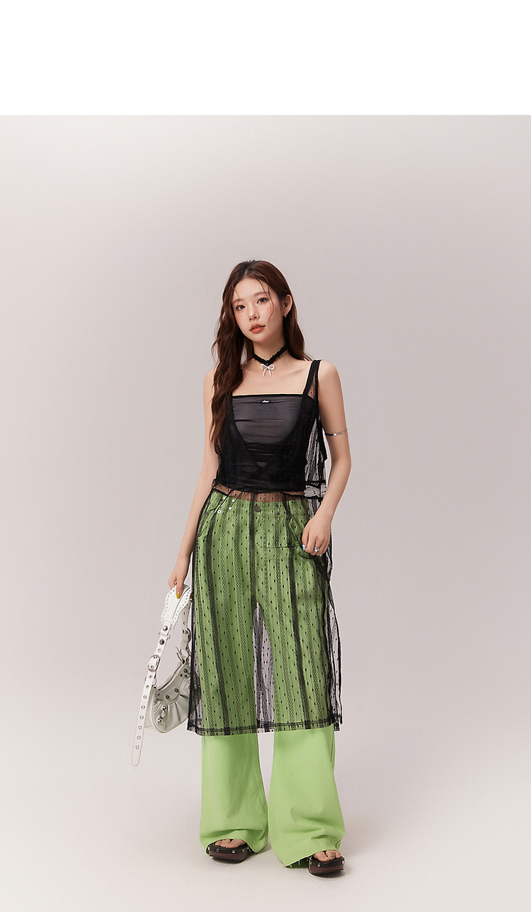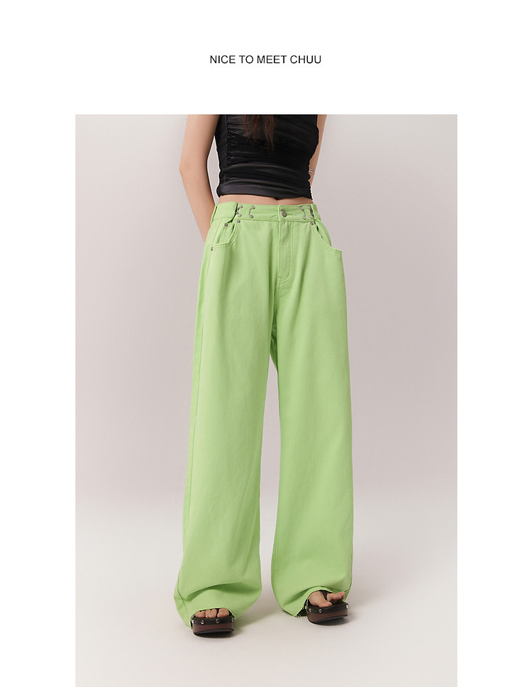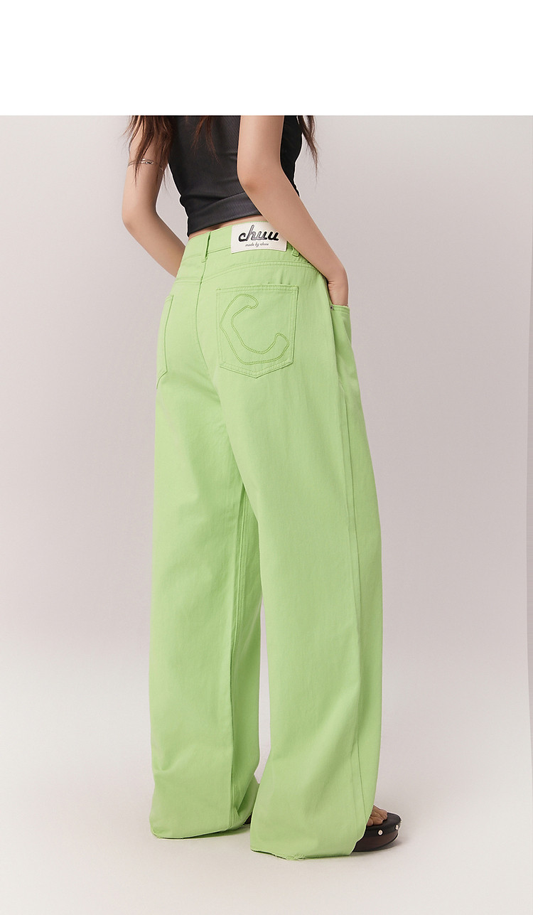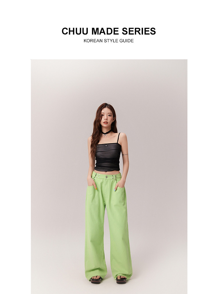 纯色毛边休闲裤女2025夏设计感褶皱宽松阔腿长裤子 479251