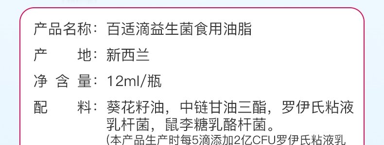 商品名称:加拿大 百适滴(Bioamicus)益生菌食用油脂 12ml