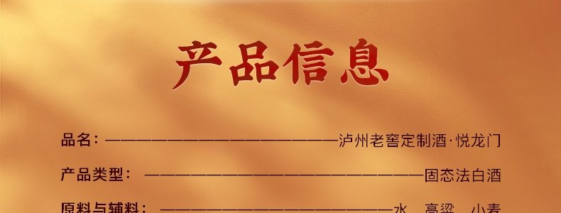商品名称:泸州老窖 悦龙门 52度浓香型白酒 500ml*2瓶