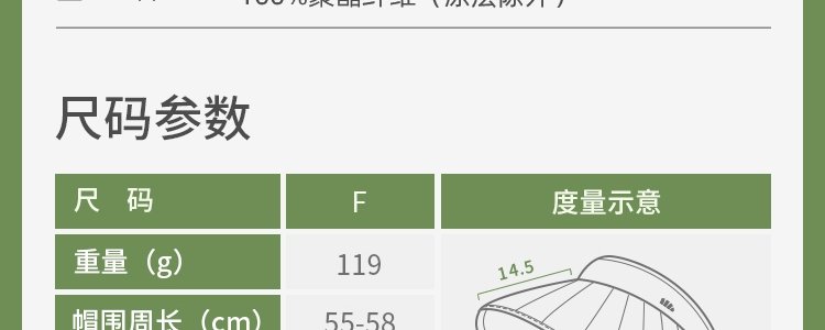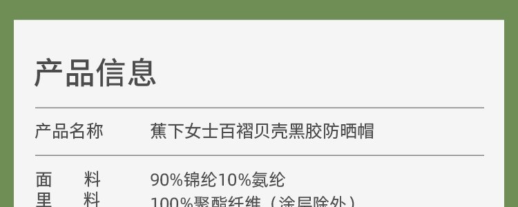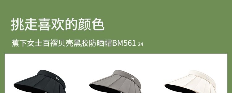 商品名称:蕉下 女士百褶贝壳黑胶防晒帽BM561 清雾绿
