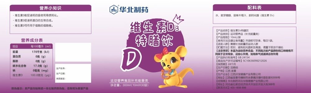商品名称:华北制药 维生素D3特膳饮 300ml
